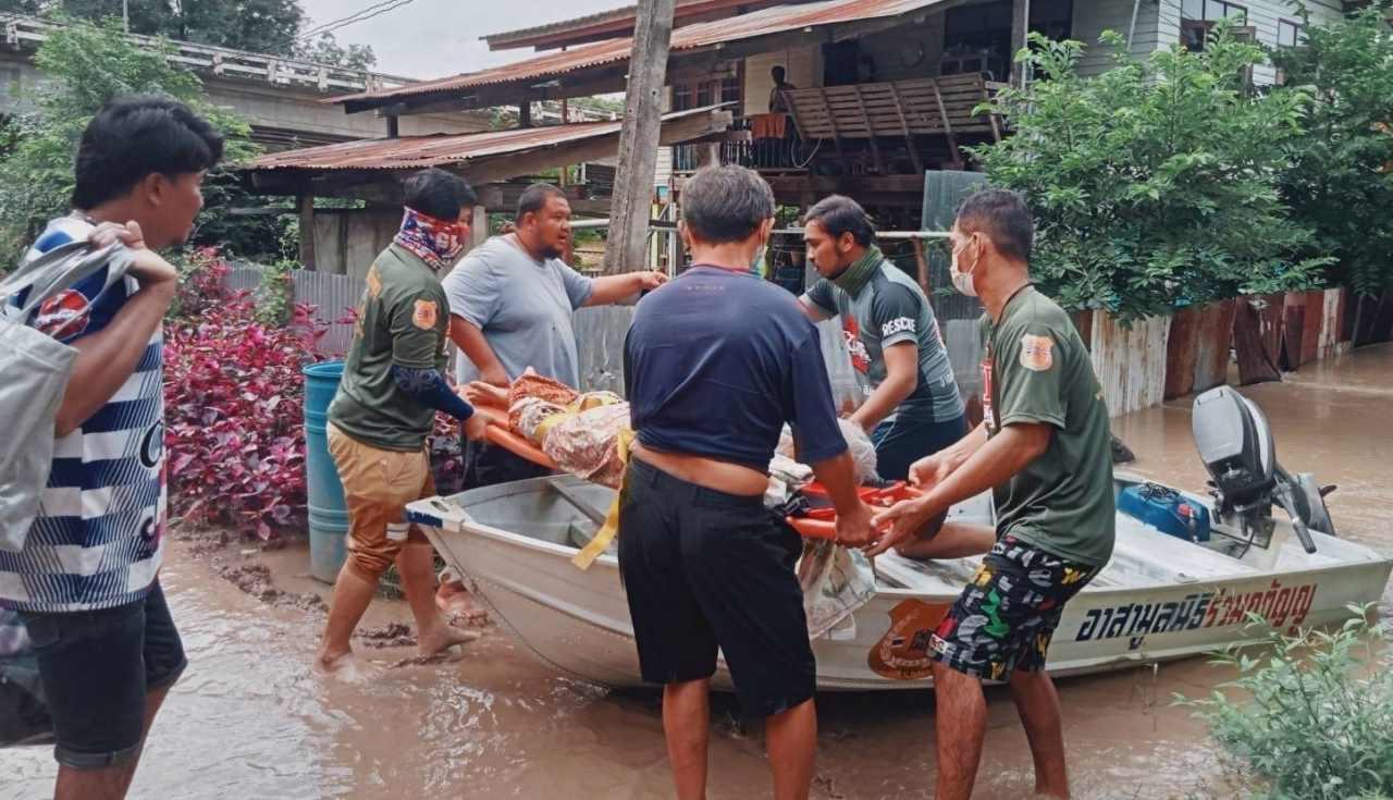 ขณะที่ เจ้าหน้าที่อาสาสมัครมูลนิธิร่วมกตัญญูจังหวัดชัยนาท เร่งเข้าช่วยเหลือชาวบ้าน ในพื้นที่ อ.สรรพยา ท้ายเขื่อนเจ้าพระยา ย้ายของขึ้นที่สูง และย้ายผู้ป่วยติดเตียงออกจากพื้นที่หลังระดับน้ำเพิ่มขึ้นสูงอย่างรวดเร็ว