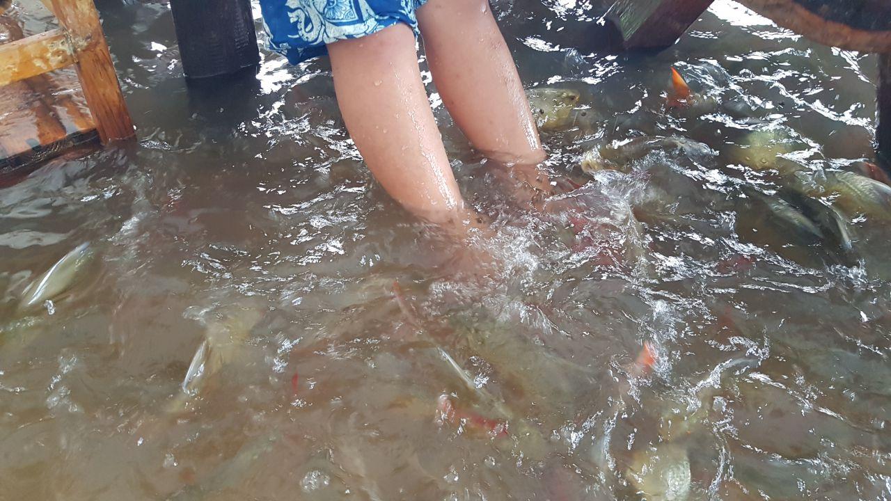 ร้านก๋วยเตี๋ยวไก่ป้าจิตร ข้าง อบต.บางแก้วฟ้า จ.นครปฐม พลิกวิกฤติให้เป็นโอกาส เปิดร้านให้ลูกค้านั่งกินสไตล์ใหม่ ให้เอาเท้าแช่น้ำ นั่งดูปลาที่ทางร้านเลี้ยง ปล่อยให้ฝูงปลารุมตอดเท้าแบบร้านสปาปลา