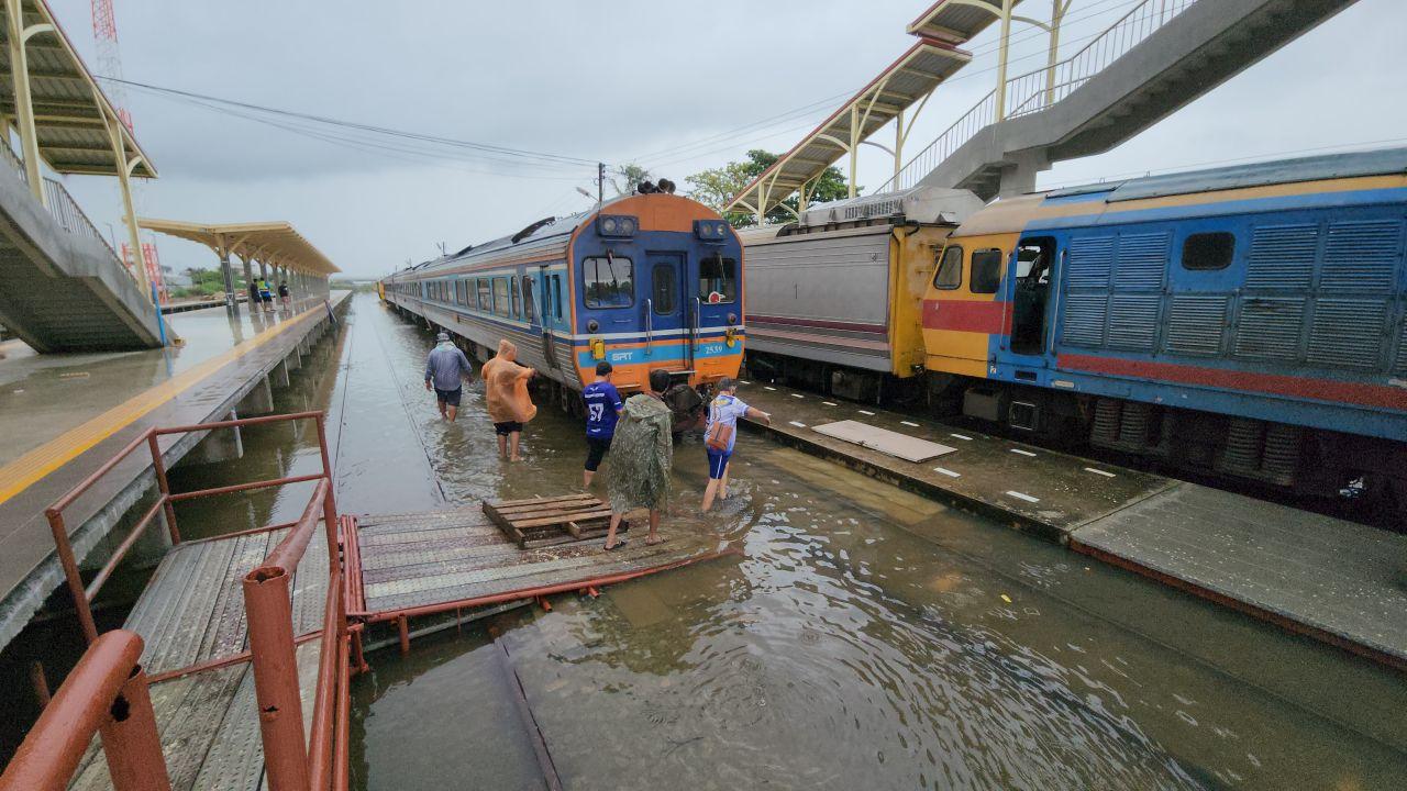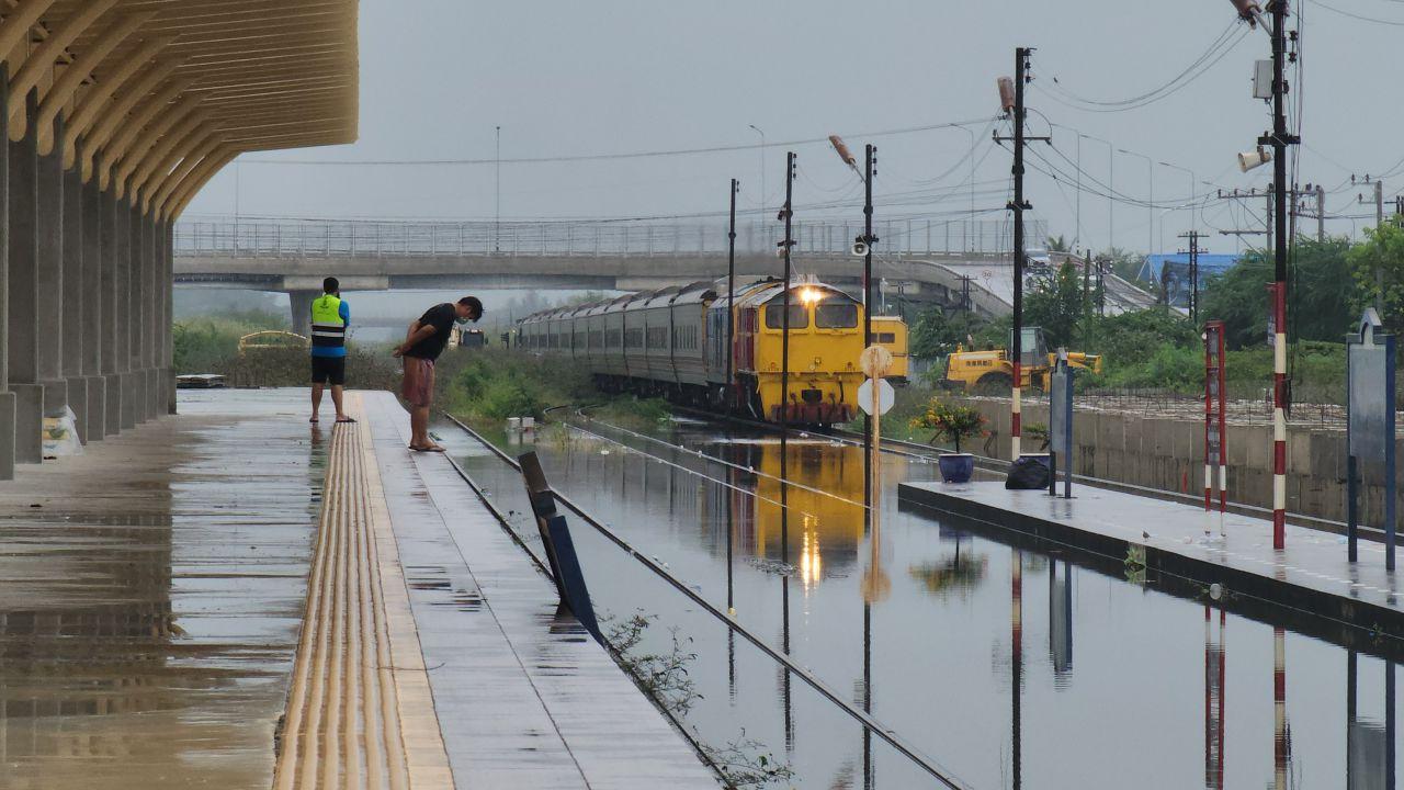 น้ำท่วมชะอำ กระทบรางรถไฟช่วงระหว่างสถานีหนองศาลา-ชะอำ-ห้วยทรายเหนือ ไม่สามารถวิ่งได้ตามปกติ ต้องใช้ความเร็วต่ำผ่านจุดที่มีปริมาณน้ำสูง เข้าสู่สถานี ทำให้เส้นทางสายใต้ล่าช้าหลายขบวน