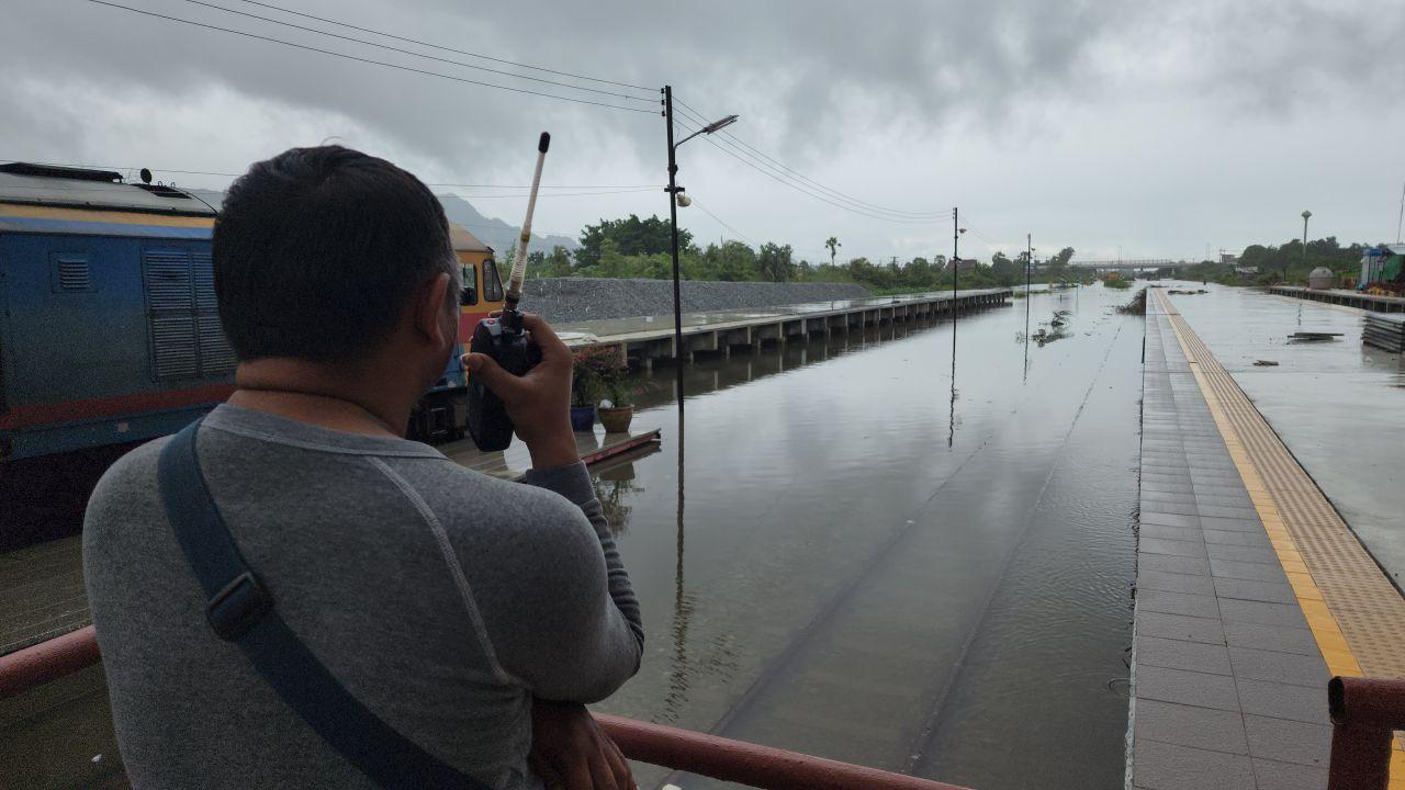 เมื่อวันที่ 11 ต.ค. 2565 นายวินัย มิ่งเมือง นายสถานีรถไฟชะอำ เปิดเผยว่า จากสถานการณ์ฝนตกหนักอย่างต่อเนื่อง ตั้งแต่วันที่ 8 ถึงวันที่ 10 ตุลาคมที่ผ่านมา ทำให้มีมวลน้ำไหลเข้าท่วมทางรถไฟสายใต้ ส่งผลกระทบต่อการเดินรถช่วงระหว่างสถานีหนองศาลา-ชะอำ- ห้วยทรายเหนือ พื้นที่จังหวัดเพชรบุรี มีน้ำท่วมเหนือสันรางสูงขึ้นอย่างต่อเนื่อง โดยบริเวณหลักกิโลเมตรที่ 186/10-187/9 ระหว่างสถานีหนองศาลา-ชะอำ ระดับน้ำสูงกว่าสันราง 5 ซม. หลักกิโลเมตรที่ 187/16-188/4 ระหว่างสถานีชะอำ-ห้วยทรายเหนือ ระดับน้ำสูงกว่าสันราง 15 ซม. ให้ขบวนรถผ่านได้โดยใช้ความเร็วไม่เกิน 5 กม./ชม.