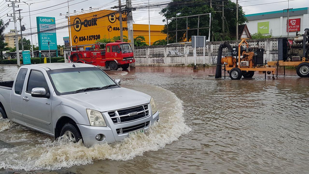 จุดที่วิกฤติอีกจุดหนึ่งน้ำท่วมถนนเพชรเกษม ช่วงเขตอำเภอเมืองนครปฐม มุ่งหน้าเข้าสู่ราชบุรี น้ำท่วมถนนสูงกว่า 30 ซม.ทั้ง 2 ฝั่งขาเข้าและขาออก กทม. โดยเฉพาะหน้าห้างสรรพสินค้าโลตัส เมืองนครปฐม รถต้องชะลอวิ่งได้อย่างช้าๆ ระยะทางถึง 3 กม. ขณะที่เทศบาลนครนครปฐม ได้เร่งนำเครื่องสูบน้ำติดตั้งริมถนนเพชรเกษมเป็นช่วงๆ ร่วม 10 ตัว เพื่อเร่งระบายน้ำออกจากเส้นทาง หากถ้ายังมีฝนตกมาอย่างต่อเนื่องน่าเป็นห่วงอาจต้องปิดเส้นทางเช่นกัน.