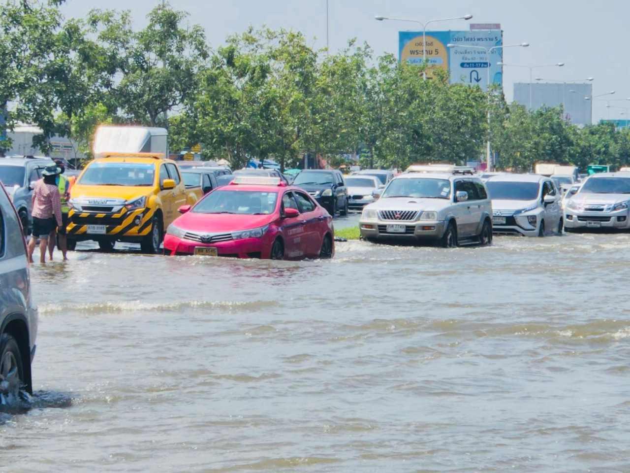 แม่น้ำเจ้าพระยา ล้นคันกั้นใต้สะพานพระราม 5 ท่วมถนนนพิบูลสงคราม และถนนนครอินทร์ ทำการจราจรติดขัดรถสะสมจำนวนมาก เตือนค่ำนี้น้ำทะเลจะหนุนสูงอีกครั้งที่ 2.12 เมตร