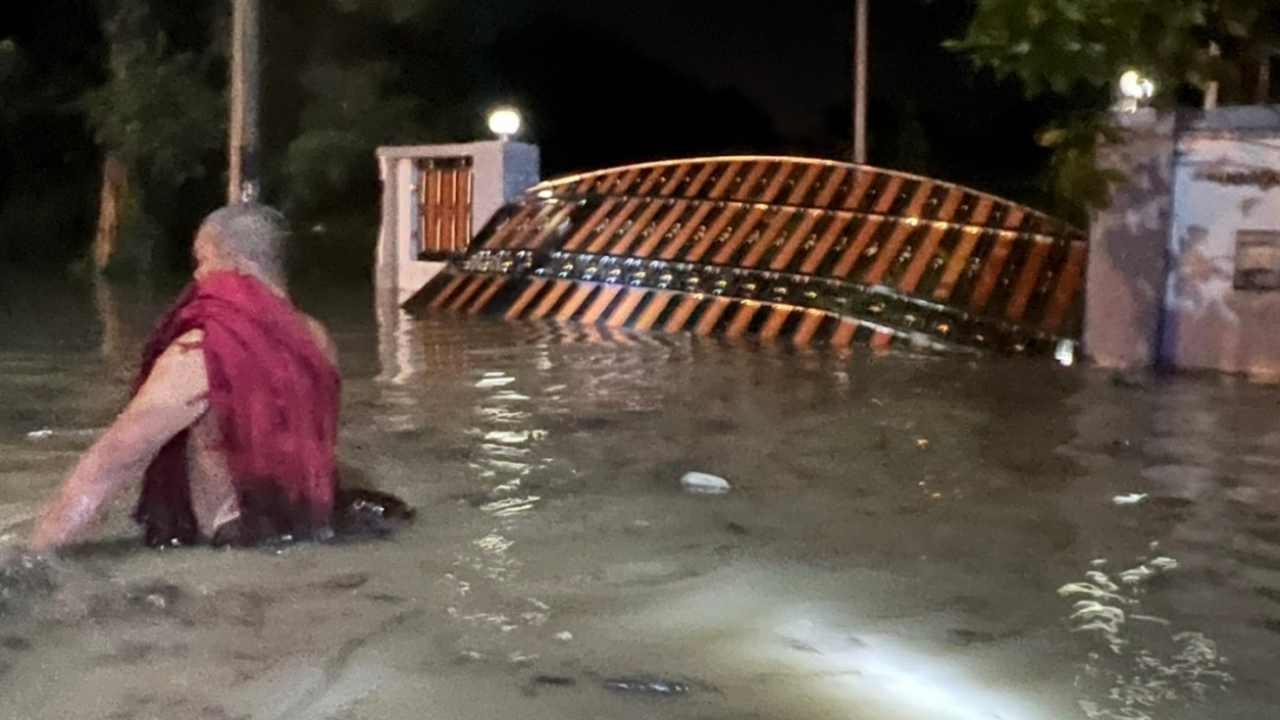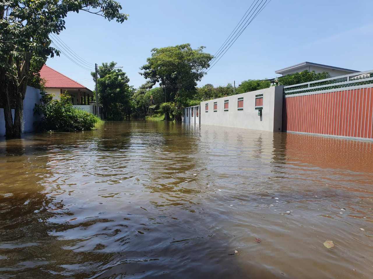 นครชัยศรีหนักแล้ว ท่าจีนล้นตลิ่งและน้ำทะเลหนุนจากปากอ่าว น้ำทะลักเข้าหมู่บ้านกฤษดานคร 26 ซัดประตูรั้วเหล็กจนหลุด บางจุดท่วมมิดหัว ถูกตัดขาดต้องใช้เรือพายอย่างเดียว นายอำเภอระดมเจ้าหน้าที่เข้าช่วยขนย้ายผู้ป่วย ผู้สูงอายุ