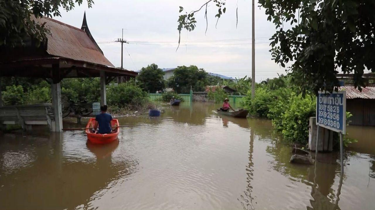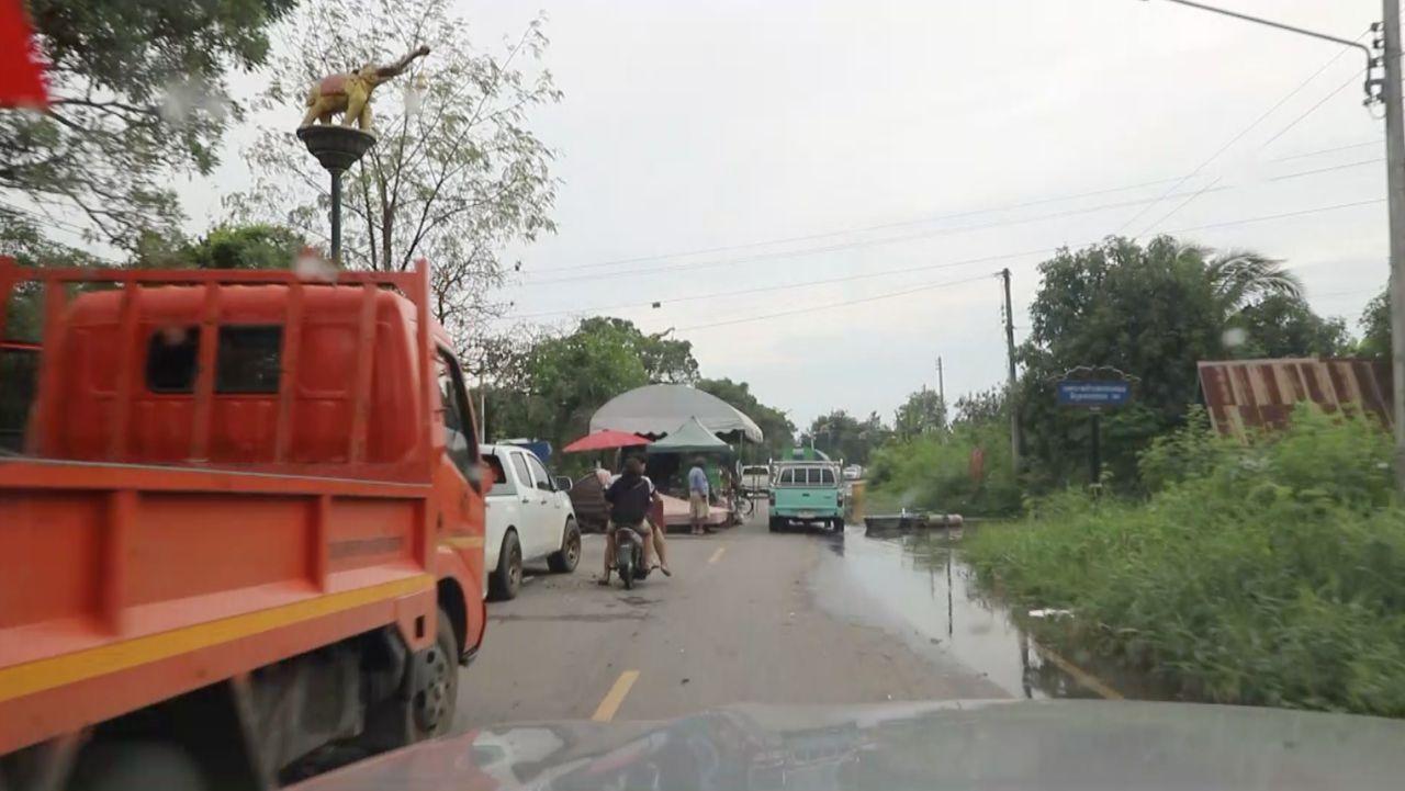 สาเหตุเนื่องจากน้ำในแม่น้ำน้อยได้ไหลย้อนกลับขึ้นมาจากอำเภอโพธิ์ทอง จังหวัดอ่างทอง ผ่านประตูระบายน้ำยางมณี และเอ่อล้นเข้าท่วมบ้านเรือนประชาชนในพื้นที่ทุกหมู่บ้านใน 3 ตำบล จนทำให้ประชาชนส่วนมากไม่สามารถอาศัยอยู่ที่บ้านได้เนื่องจากบ้านนั้นต่ำกว่าถนน ต้องขนย้ายสิ่งของมาอาศัยอยู่ริมถนนเป็นระยะทางยาวหลายกิโลเมตรถึงแม้ว่าจะมาอยู่บนถนน ชาวบ้านเองก็ต้องหาแคร่ หรือหนุนที่นอนให้สูง บางรายใช้รถยนต์เป็นที่อยู่อาศัยและเก็บสิ่งของ เพราะถนนตลอดสายถูกน้ำไหลผ่าน บางช่วงสูงถึง 50 เซนติเมตร รถเล็ก รถกระบะที่ไม่ได้ยกสูง ไม่สามารถสัญจรผ่านไปได้