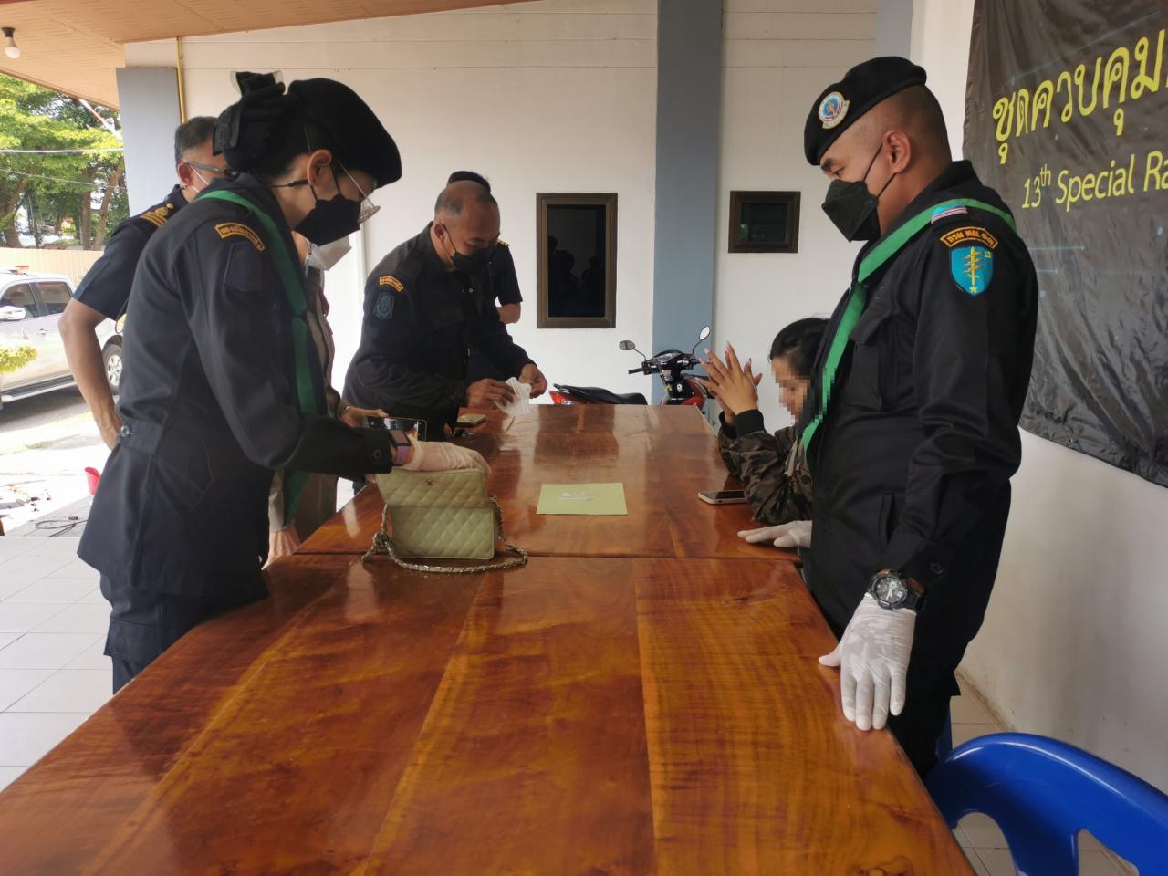 ต่อมา จนท.ชุดปฏิบัติการร่วมฯ ได้ตรวจพบหญิงไทยต้องสงสัยนุ่งกางเกงยีนส์ขายาวสีน้ำเงิน สวมเสื้อคลุมแขนยาวลายสีดำ สะพายกระเป๋าข้างสีเขียวมีผ้าพันคอสีเทาห้อยทับ สวมแมสก์ปิดปากสีขาว เดินเท้าลากกระเป๋าเดินทางสีฟ้าจากฝั่งปอยเปต ประเทศกัมพูชา เข้ามาในประเทศไทยเมื่อถึงจุดตรวจร่วม อ.20ฯ จนท.สังเกตเห็นตาปรือๆ จึงแสดงตัวขอตรวจค้น และจากการตรวจค้นพบยาเคตามีน ซึ่งเป็นวัตถุออกฤทธิ์ต่อจิตและประสาท เป็นยาเสพติดประเภท 2 ชนิดผงสีขาวบรรจุอยู่ในถุงพลาสติกใสขนาดเล็กชนิดรูดกดปิด-เปิด น้ำหนักประมาณ 0.635 กรัม ซุกซ่อนอยู่ในกระเป๋าสะพายข้างสีเขียว จึงควบคุมตัว น.ส.พรนภา โพธิ์ใคร อายุ 24 ปี ชาว จ.เพชรบุรี มาสอบสวนที่ ร้อย.ทพ.1302