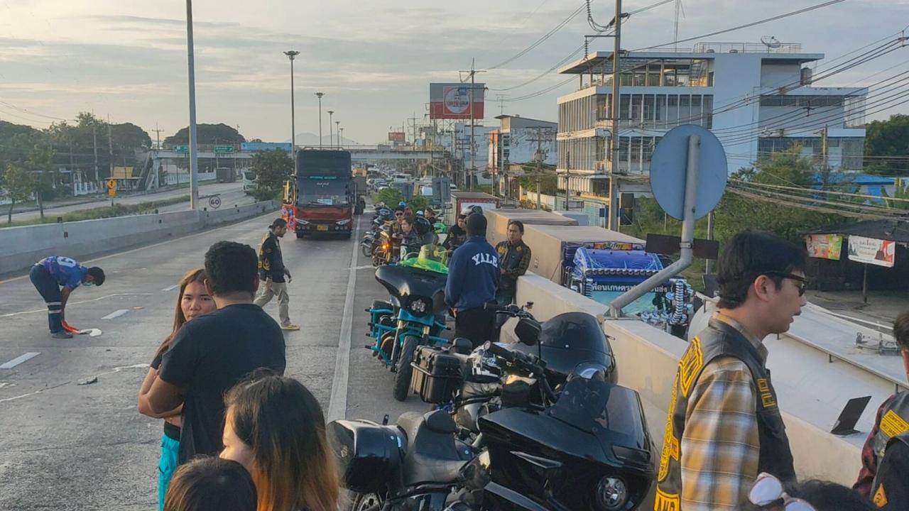 หนุ่มวัย 28 ขี่รถ จยย.ฮาร์เลย์-เดวิดสัน เสียหลัก ถูกรถพ่วงเหยียบศีรษะ บนสะพานต่างระดับมิตรภาพ เมืองสระบุรี เพื่อนร่วมขบวนช็อก กำลังจะไปงานประกวดรถที่โคราช