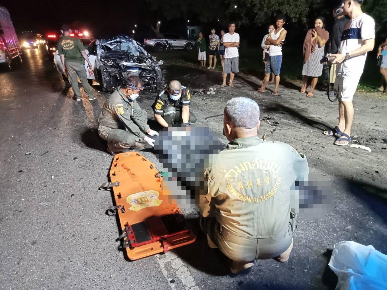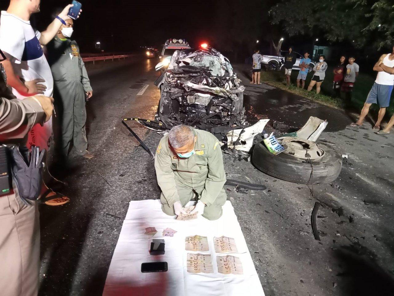 ที่เกิดเหตุเป็นถนนสี่เลนสภาพมืด ฝั่งมุ่งหน้าสระบุรีพบรถยนต์เก๋งยี่ห้อ เบนซ์ สีขาว หมายเลขทะเบียน กย-1234 ลพบุรี ในสภาพด้านหน้าพังยับเยิน เศษชิ้นส่วนรถแตกกระจัดกระจายทั่วบริเวณ มียางอะไหล่รถบรรทุกตกอยู่ 1 เส้น ภายในซากรถพบว่าถุงลมนิรภัยทำงานทั้งคัน ที่ซากรถตอนหน้าพบร่างนาย อำนวย งามประเสริฐ อายุ 37 ปี อยู่บ้านเลขที่ 99 หมู่ที่ 1 ต.ดีลัง อ.พัฒนานิคม จ.ลพบุรี เจ้าหน้าที่ต้องใช้อุปกรณ์ในการตัดถ่างนำร่างออกมาได้ในเวลาต่อมา นำส่ง รพ.ท่ามกลางเสียงร้องไห้ระงมจากภรรยาและญาติ