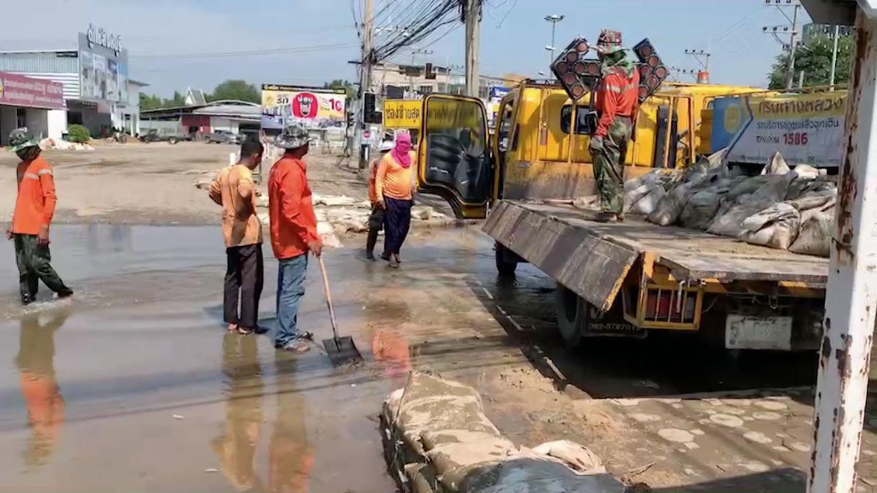 ขณะนี้แขวงทางหลวงสิงห์บุรีได้ทำการเคลียร์กระสอบทรายคันป้องกันน้ำ ให้เส้นทางต่างๆ สามารถกลับมาใช้งานได้อย่างปกติอีกครั้งสถานการณ์ลุ่มน้ำเจ้าพระยา หลังจากที่เขื่อนเจ้าพระยา จังหวัดชัยนาท ได้ลดการระบายน้ำลงอย่างต่อเนื่อง ส่งผลให้น้ำในแม่น้ำเจ้าพระยาจังหวัดสิงห์บุรีลดระดับลง ซึ่งในบางพื้นที่อย่างเช่นริมแม่น้ำเจ้าพระยาน้ำลดลง 50-60 เซนติเมตร ส่วนพื้นที่อื่นๆ ที่น้ำเอ่อล้นข้ามคลองชลประทานไป ก็เริ่มลดลงบ้างแล้ว แต่บางจุดที่เป็นพื้นที่ลุ่มต่ำ น้ำยังคงท่วมสูงและเริ่มส่งกลิ่น ด้วยไม่มีทิศทางจะไหลออกไปทางใดได้.