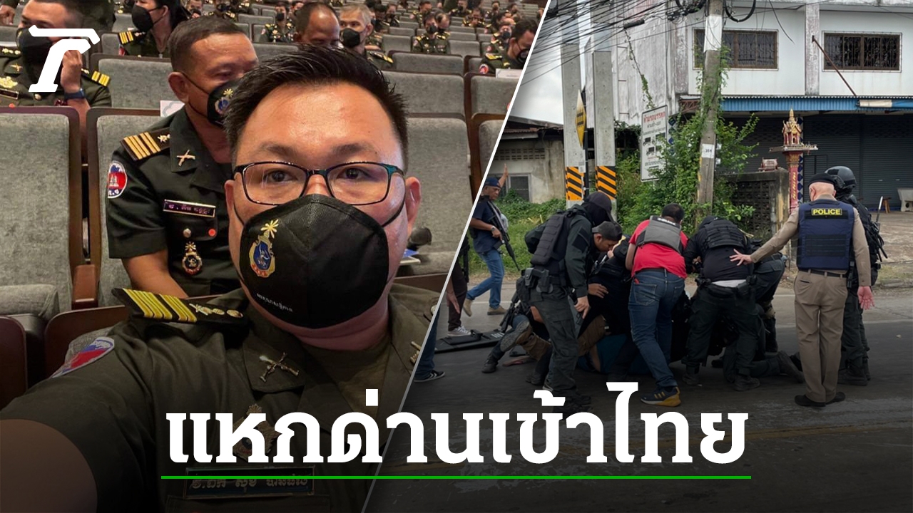 พ.อ.ทหารเขมรคลั่ง พกปืนขับรถจี๊ป ทะเบียนกัมพูชาแหกด่านชายแดนเข้าไทย ด้าน ทหาร-ตำรวจ ต้องนำกำลังไล่ล่าถึงสี่แยก อ.วัฒนานคร ปิดล้อมกว่า 12 ชม. จึงบุกชาร์จควบคุมตัวไว้ได้ อ้างทะเลาะกับครอบครัวจนเกิดคลุ้มคลั่ง