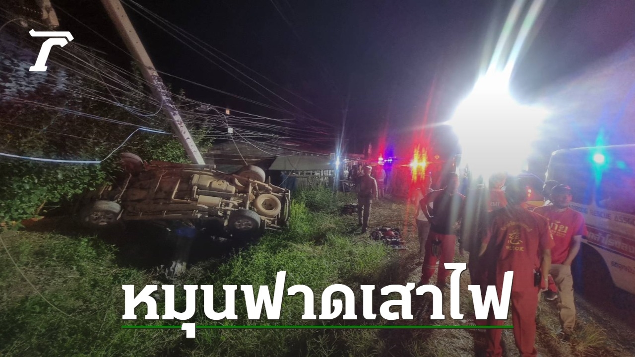 หนุ่มใหญ่ควบกระบะ พุ่งตกข้างทาง-ฟาดเสาไฟฟ้า รถพังยับเจ็บ 2 ตาย 1 สลดคนตายเป็น ด.ญ. 10 ขวบ ด้านคนขับกระบะให้การวกวน บอกตกใจรถคันหน้าเปลี่ยนเลนกะทันหัน-จึงเบรกอย่างแรงจนหมุนเสียหลัก