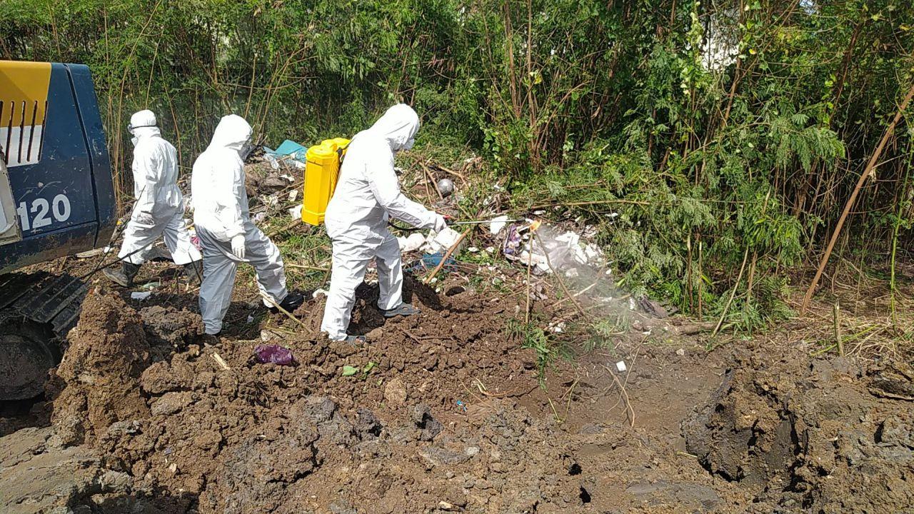 ส่วน นายวิริยะ สินเกษม ปลัด อบต.ลานตากฟ้า ได้นำรถแบ็กโฮมาขุดหลุมลึกกว่า 2 เมตร และให้เจ้าหน้าที่อบต.พ่นยาฆ่าเชื้อนำซากแมวทั้งหมดฝังกลบ และไปตรวจสอบตามบ้านประชาชนและบ้านร้าง เพื่อหาซากแมว นำมาฝังกลบและประสานชาวบ้านเพื่อแก้ไขปัญหาสุนัข แมวจรจัด ในหมู่บ้าน ส่วนเรื่องที่แมวตายจำนวนมากก็ต้องประสานกับเจ้าหน้าที่ที่เกี่ยวข้องเพื่อตรวจสอบการตายว่าโดนวางยาหรือไม่ ซึ่งจะต้องรายงานให้นายก อบต.ทราบและไปปรึกษากับปศุสัตว์ อ.นครชัยศรี ตำรวจสภ.นครชัยศรี ตามข้อกฎหมายต่อไป.