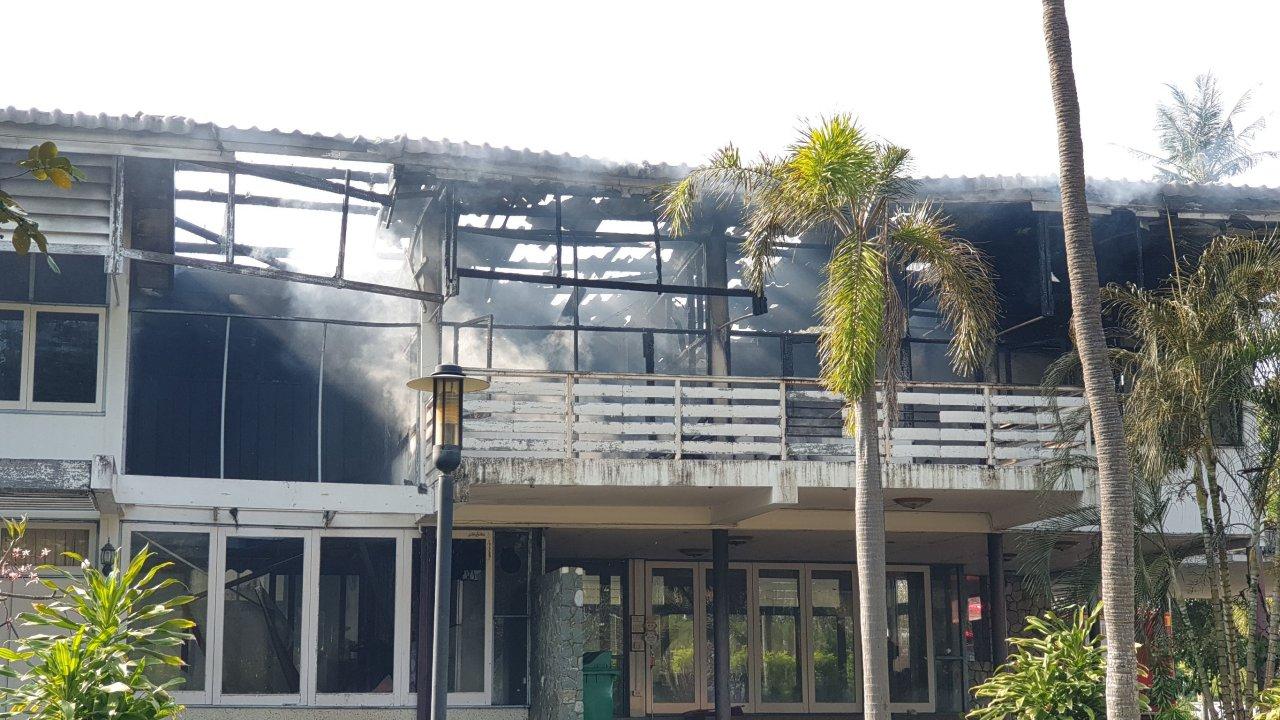 หลังจากเพลิงสงบตรวจสอบที่เกิดเหตุพบ พบห้องพักจำนวน 5 ห้อง ชั้น 2 และด้านล่างเป็นห้องโถงใหญ่ 1 ห้อง ถูกเพลิงไหม้วอดเสียหายทั้งหมด จากการสอบถาม นายธานี ม่วงใหม่ อายุประมาณ 50 ปี ผู้ดูแล เล่าว่า ก่อนเกิดเหตุตนกำลังทำงานอยู่ใกล้กับอาคาร จากนั้นจึงเข้าไปดูในอาคารพบเพลิงกำลังลุกไหม้ห้องพักชั้น 2 อย่างรุนแรง จึงขี่รถจักรยานยนต์ไปตามเจ้าหน้าที่ดับเพลิงให้มาช่วยดับเพลิง แต่ก็ไม่ทัน วอดทั้งหลัง