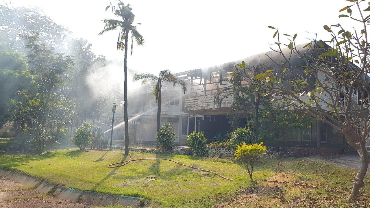 ที่เกิดเหตุเป็นอาคารไม้ 2 ชั้น พบเพลิงกำลังลุกไหม้ตัวอาคารบริเวณห้องพักชั้น 2 อย่างรุนแรง เนื่องจากห้องพักทั้งหมดเป็นอาคารเก่าแก่ สร้างขึ้นเมื่อประมาณ พ.ศ.2500 ใช้รับรองเจ้าหน้าที่ที่ทำงานในทำเนียบรัฐบาล ทำให้เพลิงลุกไหม้รุนแรงอย่างรวดเร็ว เจ้าหน้าที่ต้องระดมรถดับเพลิง จำนวน 5 คัน เร่งฉีดน้ำสกัดเพลิงไม่ให้ลุกลาม ใช้เวลาประมาณ 1 ชั่วโมง จึงสามารถควบคุมเพลิงไว้ได้ ไม่มีผู้ได้รับบาดเจ็บ