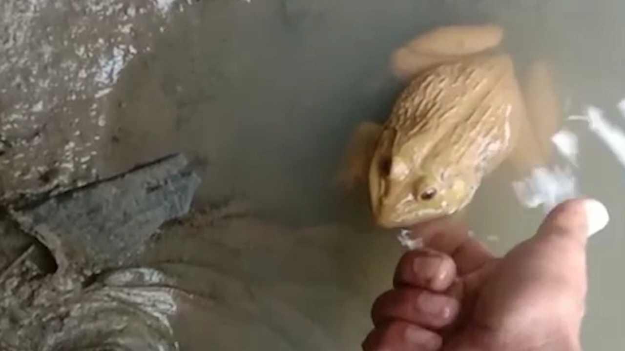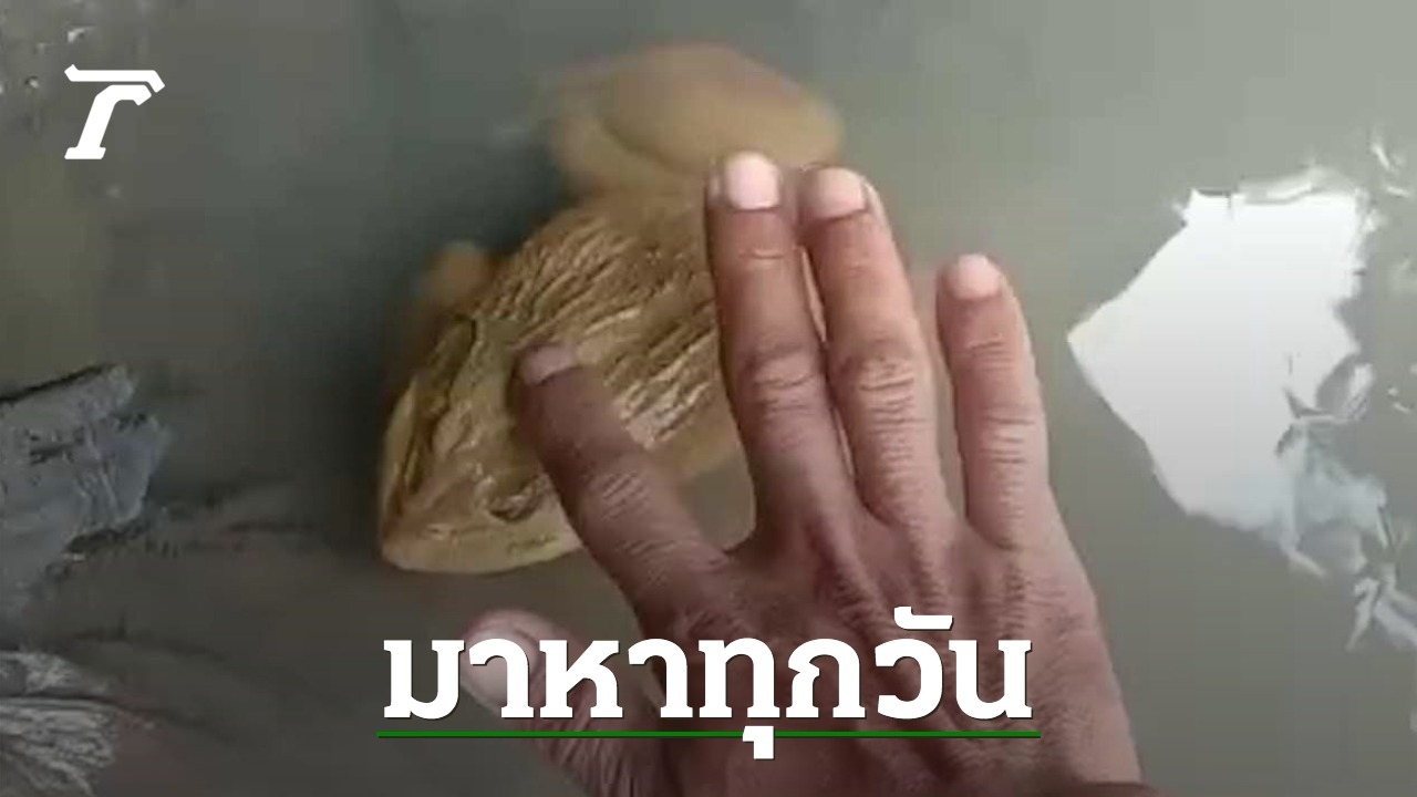 กบสีทองแสนเชื่อง ลอยคอว่ายน้ำมาให้ผู้ใหญ่บ้านลูบหัวเกาคาง เผยมาทุกเช้าช่วง 6 โมง รอกินอาหารแมว กินอิ่มแล้วดำน้ำหายไปมาใหม่วันรุ่งขึ้น ชาวบ้านทราบข่าวแวะเวียนมาดู เชื่อมาให้โชค