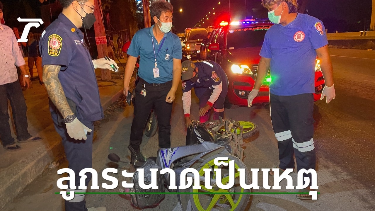2 หนุ่มสาว ขับ จยย.มุ่งหน้ากลับที่พัก โดดเนินลูกระนาดเสียหลักล้มคว่ำ สลด หนุ่มคนขับกระเด็นมุดใต้ท้อง 18 ล้อ บี้หัวแบะตายสยอง ส่วนสาวคนซ้อนได้รับบาดเจ็บ