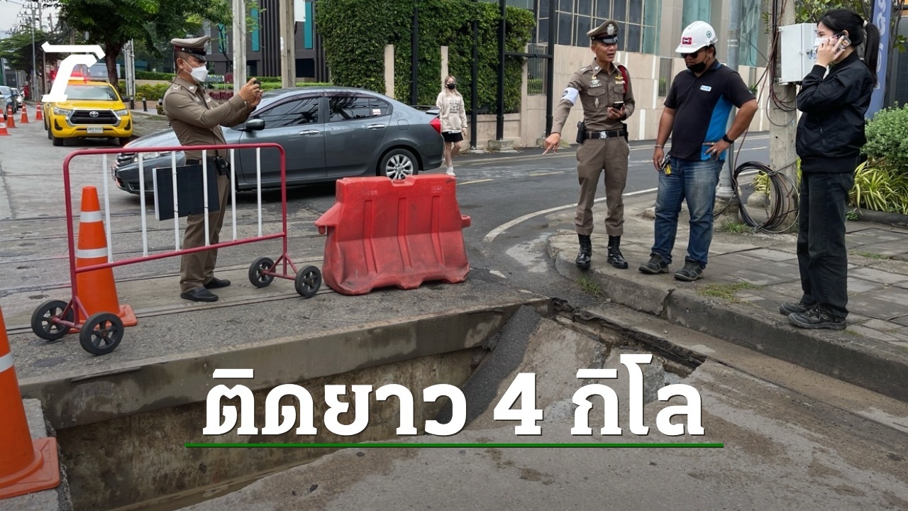 นนทบุรี ถนนแจ้งวัฒนะ ฝั่งขาเข้า บริเวณปากซอยแจ้งวัฒนะ-ปากเกร็ด 23 เกิดทรุดตัวเป็นโพรงลึกขนาดใหญ่ รถติดยาวเหยียด เป็นระยะทางกว่า 4 กิโลเมตร