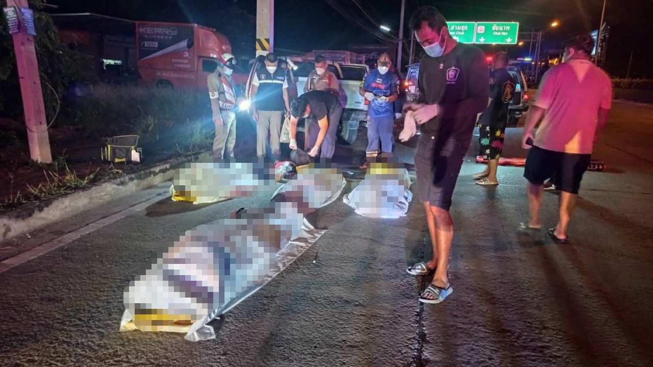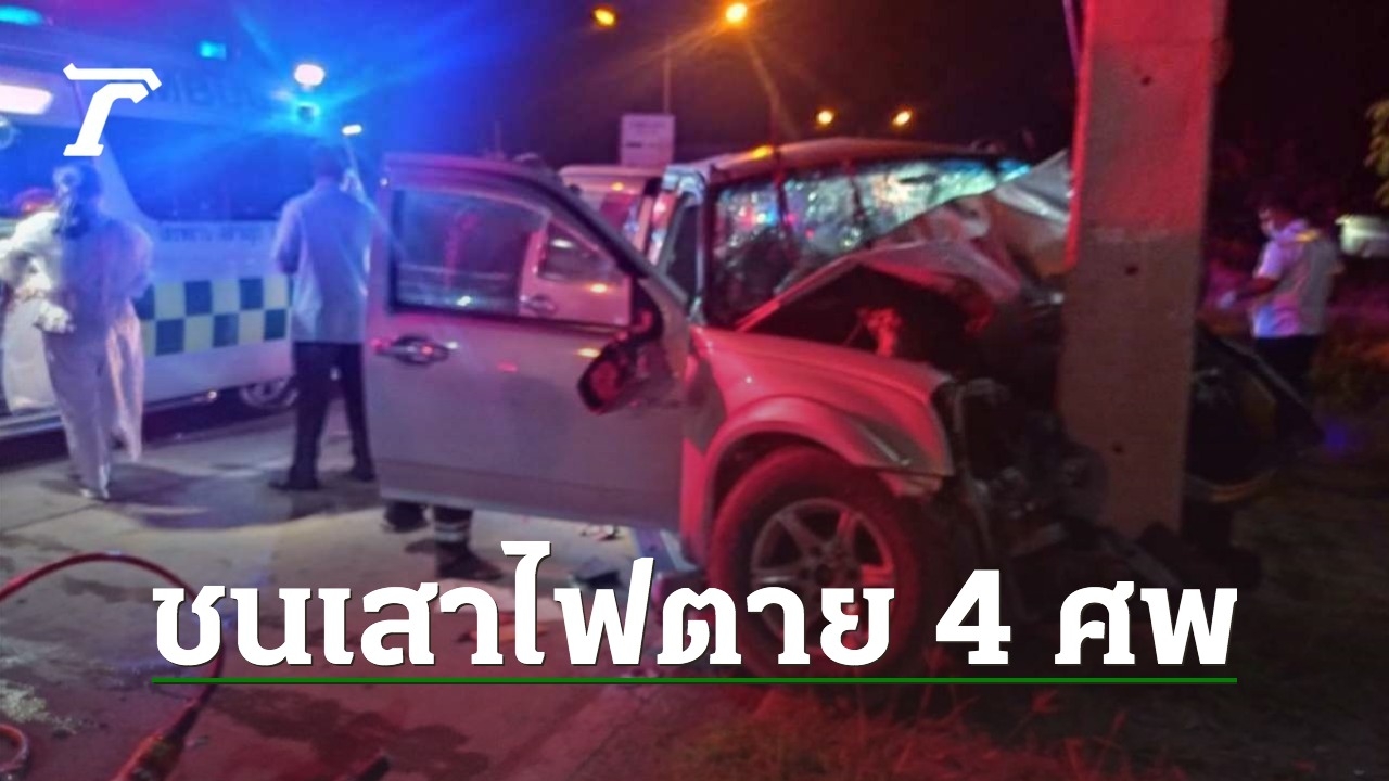 กระบะ ผญบ.ไปรับลูกชายที่ กทม.กลับชัยนาท เสียหลักชนเสาไฟฟ้าริมถนนสาย 340 สุพรรณบุรี-ชัยนาท ก่อนถึงสี่แยกไฟแดงสามชุก ดับคาที่ 4 ศพ พบรอยรถปีนขึ้นฟุตปาทก่อนชนเสาไฟ ตร.เร่งสอบสาเหตุต่อไป