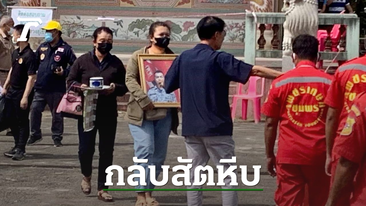 ญาติรับร่าง 6 ผู้เสียชีวิตจากเหตุการณ์ ร.ล.สุโขทัยล่มในทะเลอ่าวไทย จากมูลนิธิสว่างราษฎร์ศรัทธาธรรมสถานบางสะพาน จ.ประจวบคีรีขันธ์ ขึ้นเครื่องบินที่กองบิน 5 กลับสัตหีบ ประกอบพิธีพระราชทานน้ำหลวงอาบศพที่วัดสัตหีบ เย็นนี้