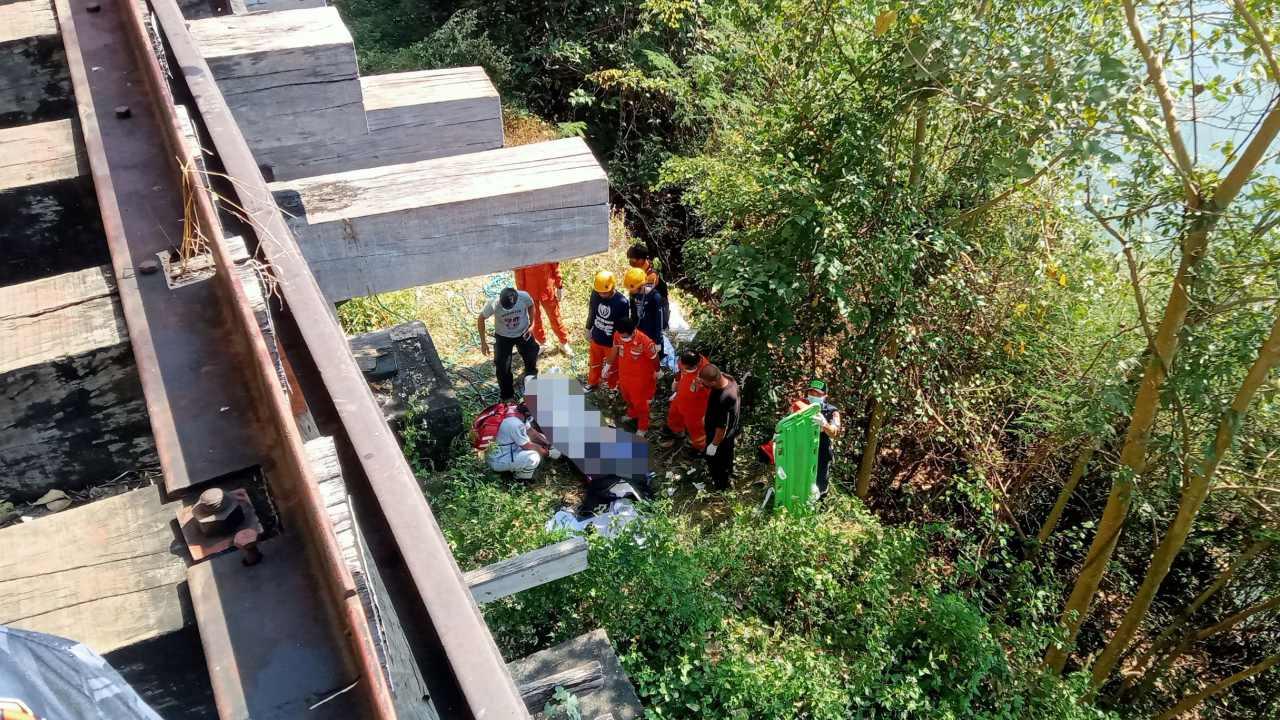 นักท่องเที่ยวนิวซีแลนด์ วัย 45 ซื้อทริปเที่ยวทางรถไฟสายมรณะ ขึ้นจากสะพานข้ามแม่น้ำแคว อ.เมืองกาญจนบุรี ถึงสะพานถ้ำกระแซ ไทรโยค เปิดประตูลงไปถ่ายภาพ ทั้งที่ไกด์ทัวร์ห้ามแล้ว พลัดตกลงไปใต้สะพานรางรถไฟ เลียบหน้าผา เสียชีวิต