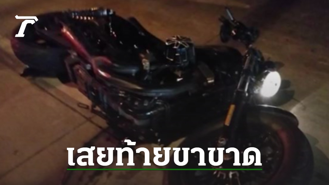 หนุ่มใหญ่ควบบิ๊กไบค์ พุ่งเสยท้ายกระบะจอดติดไฟแดง เจ็บหนักขาขาด-นอนร้องครวญครางอยู่กลางถนน จนท.รุดช่วยหามส่ง รพ. คนขับกระบะรับตกใจมาก-สุดงงจอดอยู่เฉยๆ ยังโดนชน