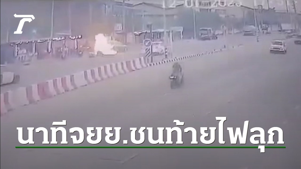 เผยภาพวงจรปิดจากกล้องอีกฝั่งเหตุ จยย.พุ่งชนท้ายแท็กซี่ไฟลุกคลอกคนขี่เจ็บสาหัส บนถนนสุขสวัสดิ์ห่างจาก สภ.พระสมุทรเจดีย์ แค่ 50 เมตร อาการล่าสุดยังนอนไอซียู ตร.กำลังรวบรวมหลักฐานสอบปากคำเพิ่ม