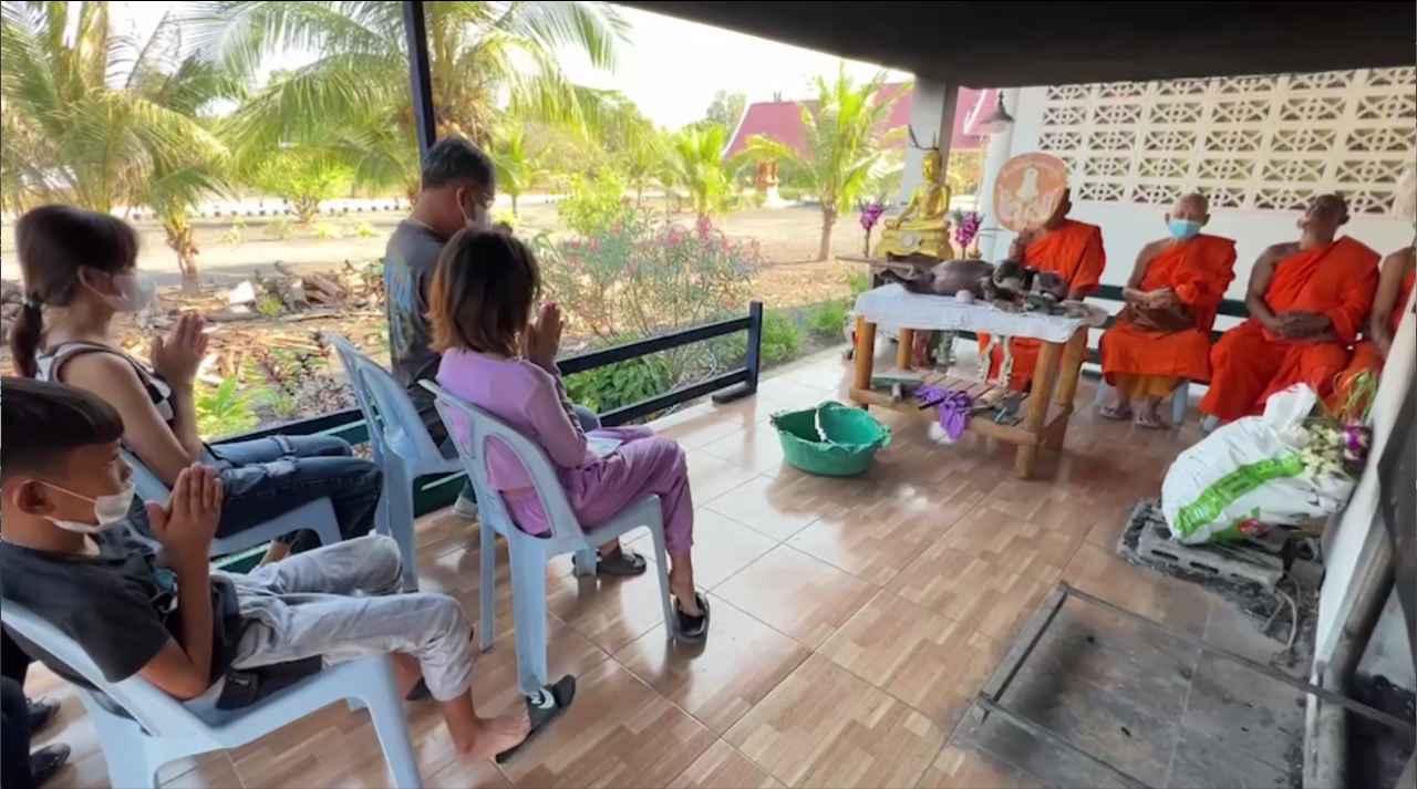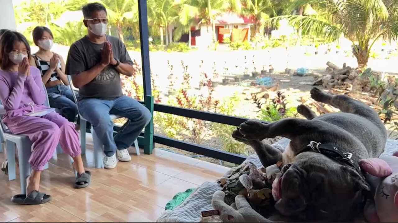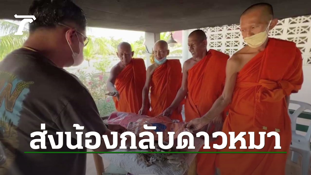 สามีภรรยาเจ้าของสุนัขที่ช็อกตายตกใจเสียงเรือระเบิด นำร่างไปให้พระสวดบังสุกุลก่อนเผาที่สำนักสงฆ์โพธิ์ทะเล เผยรักมากนอนกอดทุกคืน วอนผู้ประกอบการเยียวยา เพราะบ้านพัง วัตถุดิบหอย ปลาหมึก เสียหาย