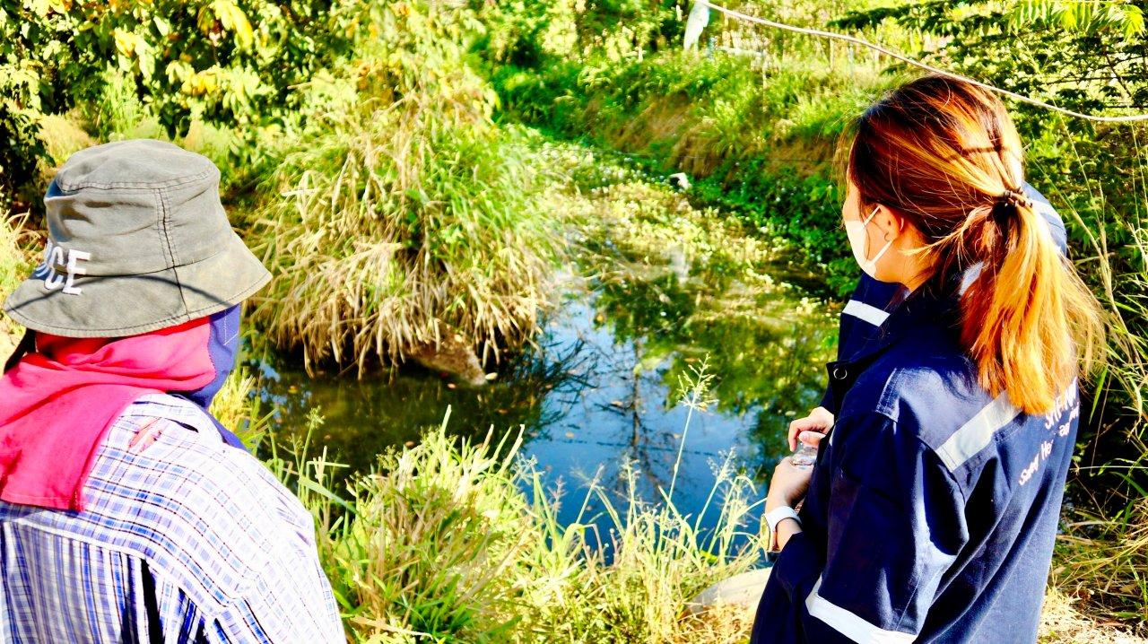 โดยมีนายโกวิทย์ ปานศรีแก้ว อายุ 65 ปี ชาวบ้านหมู่ 16 ต.หลุมรัง อ.บ่อพลอย จ.กาญจนบุรี น.ส.ศิริวรรณ ทองสุข อายุ 43 ปี ชาวบ้าน หมู่ 16 ต.หลุมรัง อ.บ่อพลอย จ.กาญจนบุรี นำพาไปลงในที่สำรวจตรวจสอบข้อเท็จจริง พบว่าลำห้วยดังกล่าวเป็นลำห้วยที่เกิดขึ้นตามธรรมชาติ โดยชาวบ้านได้ใช้น้ำในลำห้วยสำหรับรดพืชผลทางการเกษตร และให้สัตว์เลี้ยง เช่น โค กระบือได้ดื่ม ซึ่งสภาพน้ำในลำห้วยจากที่เคยใสสะอาดกลับกลายเป็นสีดำ และขณะที่ลมกำพัดโชยมา ได้พัดเอาฝุ่นละอองที่มีกลิ่นเหม็นมาด้วย อีกทั้งละอองฝุ่นยังทำให้มีอาการระคายเคืองตามผิวหนังด้วย