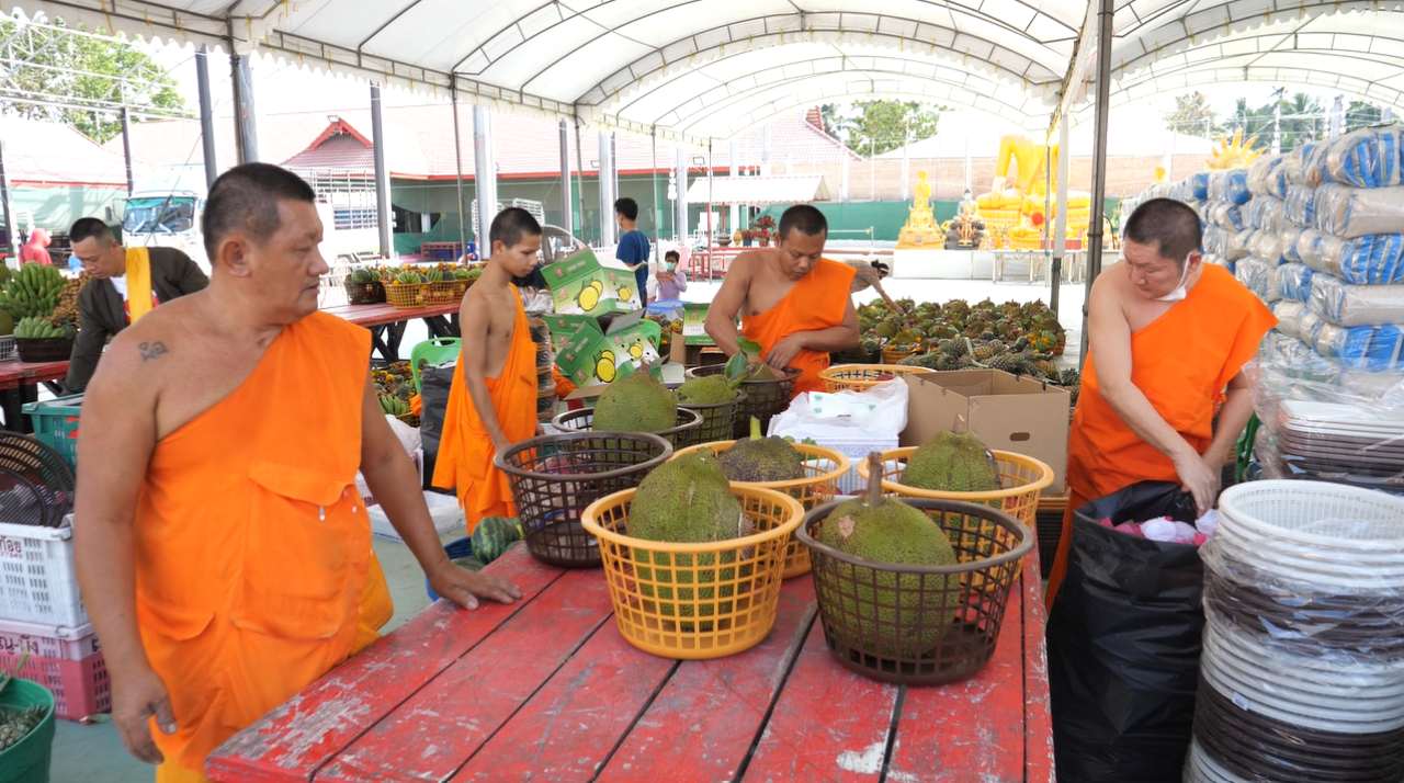 วัดจุฬามณี เตรียมพิธีและเครื่องบวงสรวง งานบวงสรวงใหญ่ ท้าวเวสสุวรรณโณ จตุมหาราชิกา ครั้งที่ 4 งานใหญ่ที่ 1 ปีมีครั้งเดียวให้ผู้เลื่อมใสศรัทธาได้มาถวายเครื่องสักการบูชาองค์ท้าวเวสสุวรรณ ขอให้ท่านคุ้มครอง ให้โชคลาภ