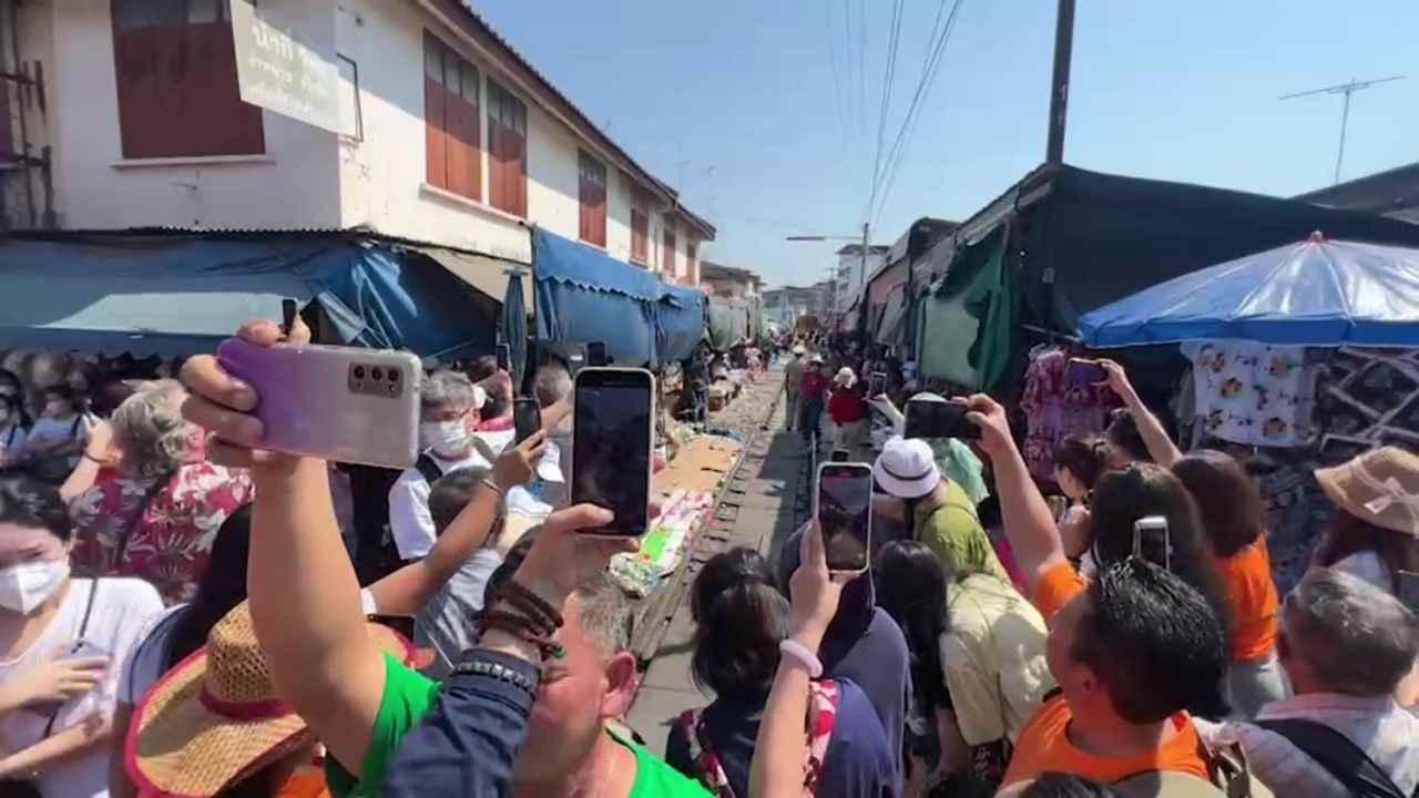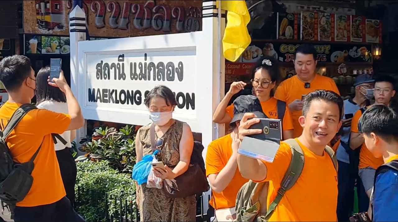 ล่าสุดเมื่อวันที่ 8 กุมภาพันธ์ 2566 บรรยากาศที่สถานีรถไฟแม่กลองเป็นไปอย่างคึกคักมีนักท่องเที่ยวต่างชาติมารอชมความอเมซิ่งระดับโลกของรถไฟวิ่งผ่านตลาดร่มหุบเข้าสู่สถานีแม่กลอง โดยเฉพาะชาวจีนที่เดินทางมาเป็นกรุ๊ปทัวร์ ส่วนหนึ่งที่ใส่เสื้อทีมสีส้ม ที่มายืนรอลุ้นความแปลกตาของรถไฟที่วิ่งผ่านตลาดด้วย บางรายก็ตั้งกล้องไลฟ์สด อวดความน่าอัศจรรย์ของตลาดแห่งนี้ไปยังเพื่อนๆ ด้วย