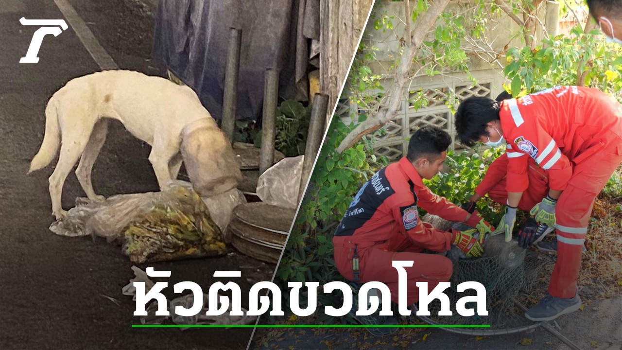 จนท.ปศุสัตว์จังหวัด พร้อมกู้ภัยใช้สวิงครอบช่วยสุนัขหัวติดโหลจนผอมโซได้สำเร็จ เร่งนำไปฟื้นฟู หลังได้รับแจ้งขอความช่วยเหลือสุนัขหัวติดโหลผอมโซ หวั่นขาดน้ำและอาหารจนตาย ในพื้นที่ตลาดน้ำอัมพวา