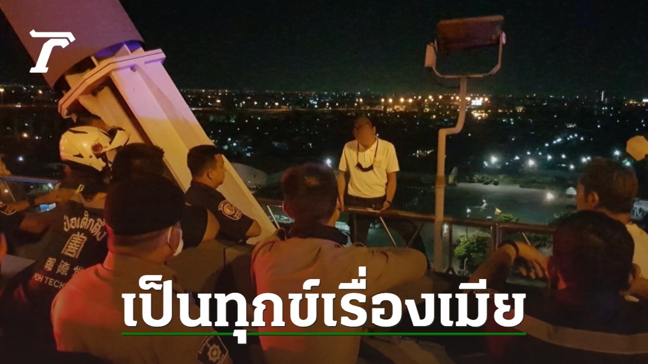 หนุ่มขอนแก่นมาทำงานเป็นการ์ดร้านอาหาร เครียดเรื่องเงินและเรื่องเมีย เนื่องจากมีเมีย 2 คน และเพิ่งไปกู้เงินมา 1 หมื่น ดื่มเหล้าย้อมใจ ขี่ จยย.ไปจอดยืนบนราวสะพาน จนท.กล่อมอยู่นานไม่สำเร็จ รอจนเผลอพุ่งคว้าตัวไว้ได้
