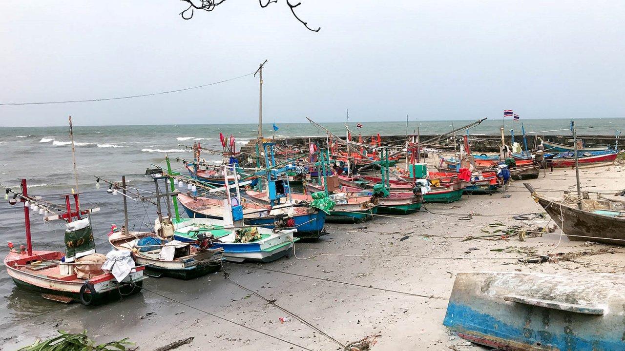 ขณะที่บริเวณท่าเทียบเรือสะพานปลาหัวหิน จ.ประจวบคีรีขันธ์ เรือประมงเล็กชายฝั่งจำนวนมากต่างงดออกจากฝั่ง พากันจอดหลบคลื่นลมแรงจนกว่าจะปกติ ส่วนที่บริเวณชายหาดหัวหิน ตลอดแนวพบว่าตลอดทั้งวันมีคลื่นลมแรง สภาพอากาศค่อนข้างปิด บรรดาโรงแรมและผู้ประกอบการชายหาดได้ขึ้นธงแดง ห้ามนักท่องเที่ยวลงเล่นน้ำทะเลโดยเด็ดขาด เพื่อป้องกันอันตรายที่จะเกิดขึ้น ต่างพากันเดินเล่นชายหาดเป็นส่วนใหญ่