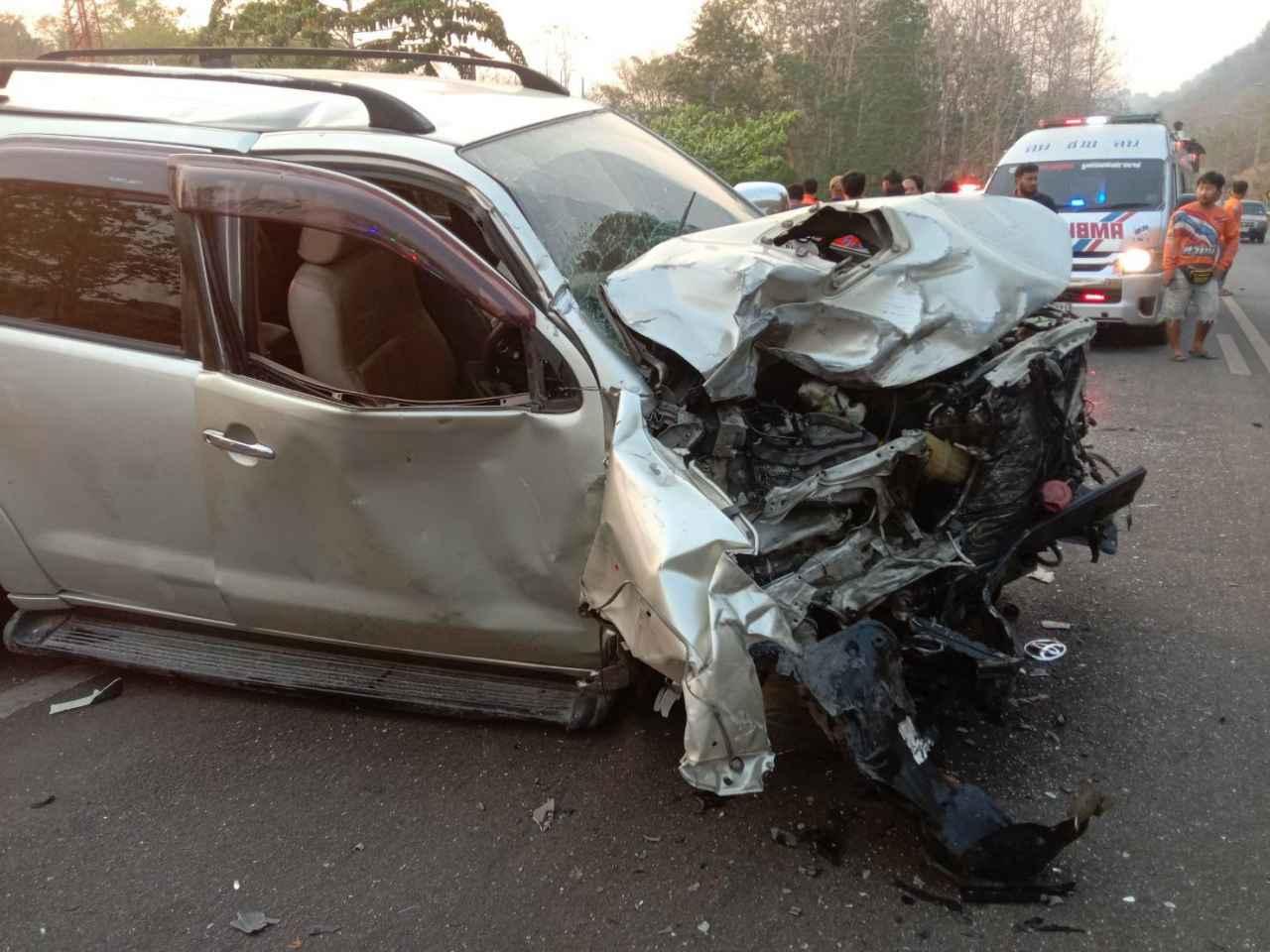 ฟอร์จูนเนอร์พุ่งชนกับรถตู้นำเที่ยวยับบนถนนสาย 323 ใกล้วัดพุตะเคียน อ.ไทรโยค จ.กาญจนบุรี คนขับรถตู้ดับคาที่ นทท.หนุ่มใหญ่ชาวเยอรมันสาหัสก่อนไปเสียชีวิตที่ รพ.ในเวลาต่อมา บาดเจ็บรวม 3 ราย