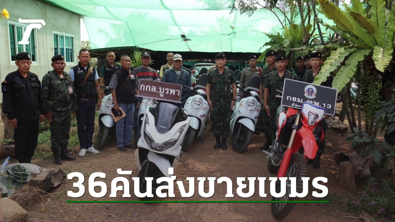กกล.บูรพา ร่วมตำรวจสระแก้ว บุกทลายแก๊งค้า จยย.ข้ามชาติ พบรถใหม่ที่ถูกโจรกรรมในสภาใหม่ 36 คัน มูลค่ากว่า 2 ล้านบาท ซุกโรงเรือนในหมู่บ้านชายแดนเตรียมลอบนำส่งขายเขมร