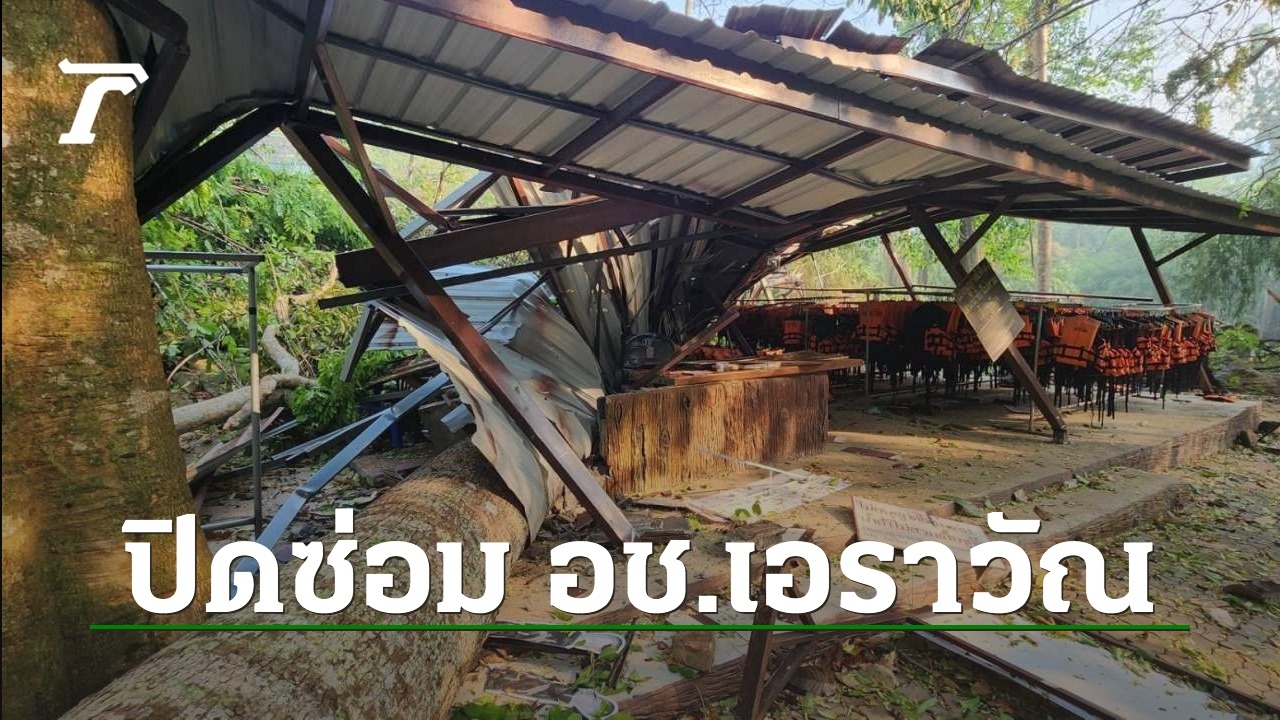 พิษพายุฤดูร้อนพัดถล่ม อ.ศรีสวัสดิ์ ทำเสียหายหนักไฟฟ้าดับ 15 ชม. เพิ่งแก้ไขจ่ายไฟได้ปกติ ด้าน อุทยานเอราวัณประกาศ ปิดแหล่งท่องเที่ยวและการพักค้างแรมชั่วคราว หลังอาคารสถานที่เสียหายอย่างหนัก