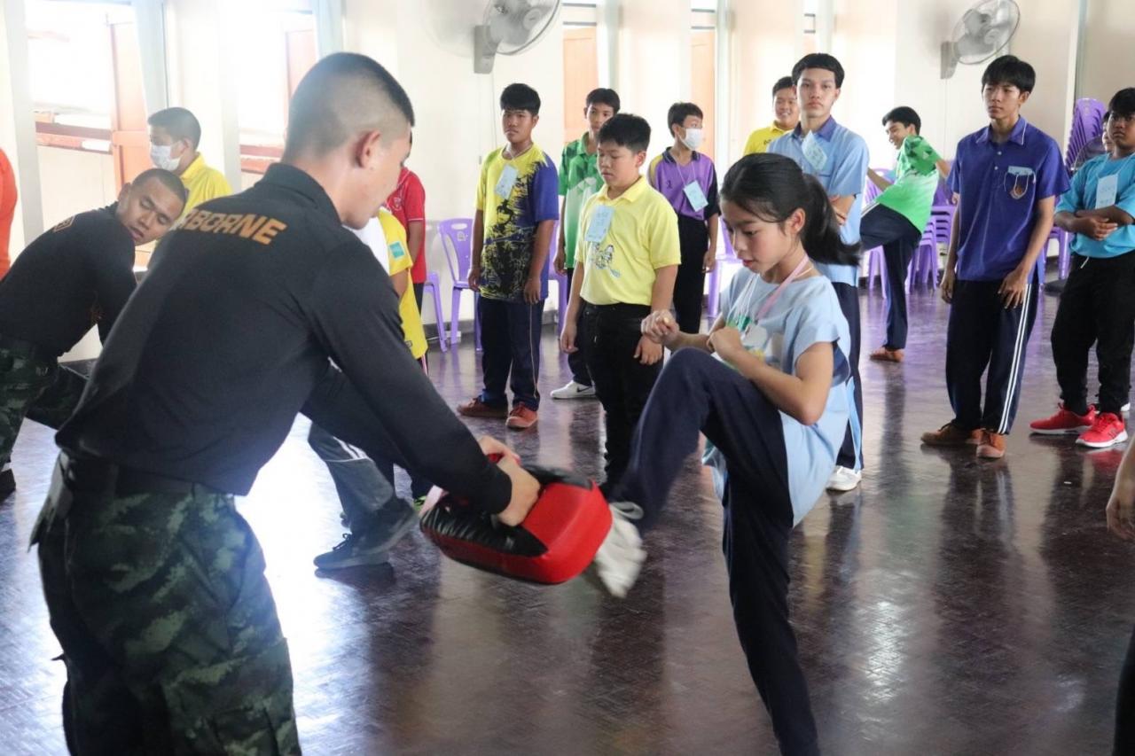 ปธ.แม่บ้าน พล.ร.2 รอ. จัดกิจกรรมมอบความรู้ให้เยาวชน บุตรหลาน กำลังพล พล.ร.2 รอ. และหน่วยขึ้นตรง เพื่อรู้จักการป้องกันตนเองจากการถูกทำร้าย การเอาตัวรอดจากสถานการณ์ต่างๆ ตามนโยบาย นขต.ทบ.