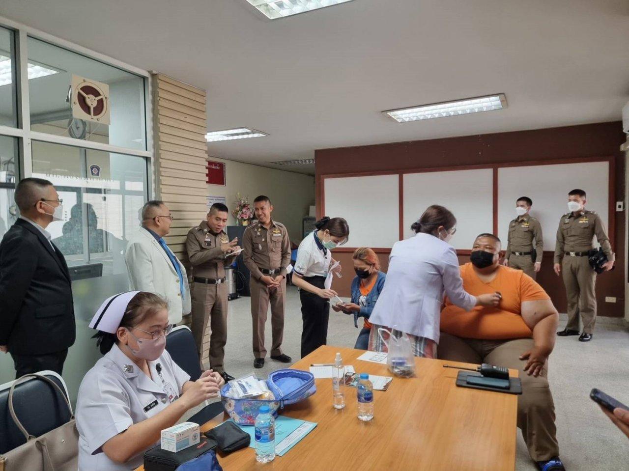 นายแพทย์ใหญ่ รพ.ตำรวจ เข้าตรวจดูอาการดาบช้างเบื้องต้น ที่ สภ.เมืองสมุทรสาคร ก่อนจะนัดให้เข้าไปรับการรักษาโรคอ้วนที่ รพ.ตำรวจ 24 เม.ย. 2566 นี้ ตามสิทธิสวัสดิการกำลังพล โดยไม่มีค่าใช้จ่าย