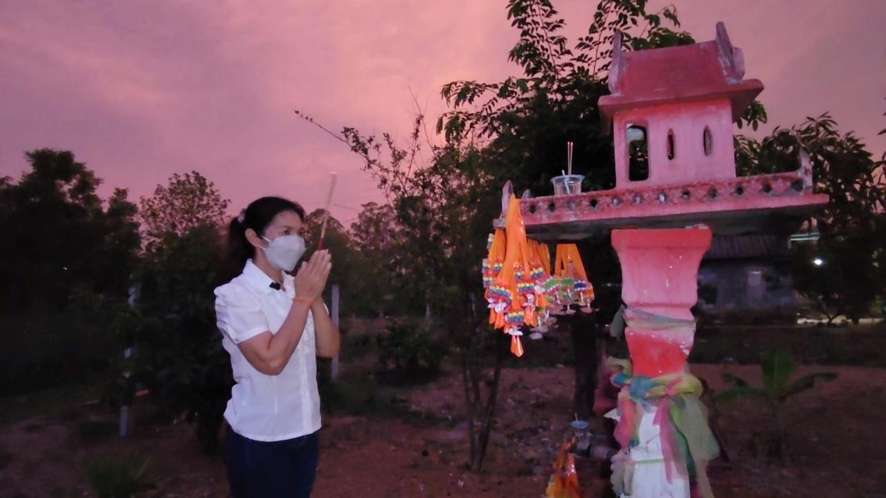 จากนั้นผู้สื่อข่าวได้เดินทางไปที่บ้าน นางแสงทอง ศรีอรรฐชา อายุ 53 ปี ผู้ถูกกล่าวหา โดยเจ้าตัวได้จุดธูปสาบานต่อหน้าศาลพระภูมิเจ้าที่ต่อหน้าผู้สื่อข่าว และเล่าว่าตนมีศักดิ์เป็นหลานสะใภ้ของยายจี่ผู้กล่าวหา เมื่อวันที่ 2 พ.ค.ที่ผ่านมา เวลา 17.00 น. หลังหวยออก ยายจี่ ได้เดินมาหาตนที่บ้าน เพื่อไหว้วานให้ตนตรวจหวย ซึ่งเขาเอาลอตเตอรี่ออกมาให้ดู 3 ใบ ประกอบด้วยเลขท้าย 599, และ 609 พอดูเสร็จก็คืนเขาไป ทีแรกก็ไม่มีปัญหาอะไร