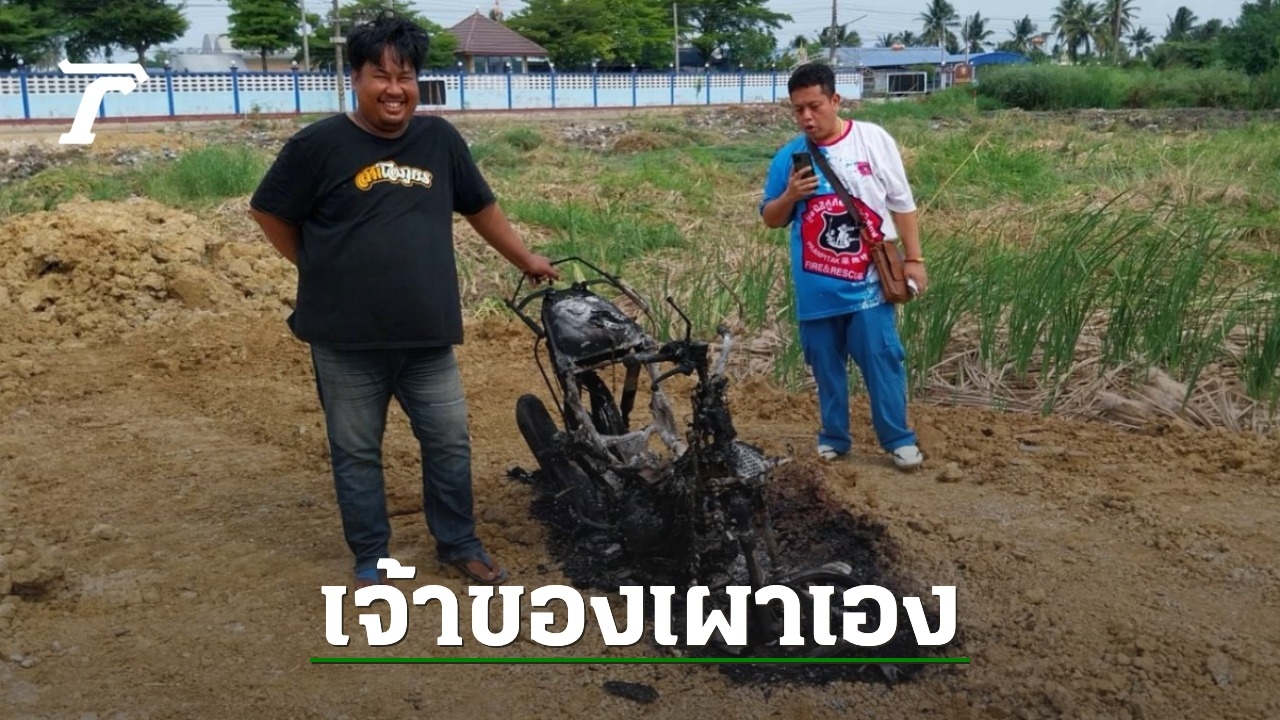 ขณะที่เจ้าหน้าที่กำลังตรวจสอบอยู่นั้น มีนายนิวัฒน์ ช่างเรืองกุล อายุ 32 ปี หนุ่มไลน์แมน อยู่หมู่ 2 ต.ท่าตลาด อ.สามพราน จ.นครปฐมมาแสดงตัวว่า เป็นเจ้าของรถคันที่ถูกไฟเผา โดยมีเอกสารประกอบรถ จยย.ติดมือมาด้วย ทั้งยังบอกว่าเป็นคนจุดไฟเผาด้วยตัวเอง