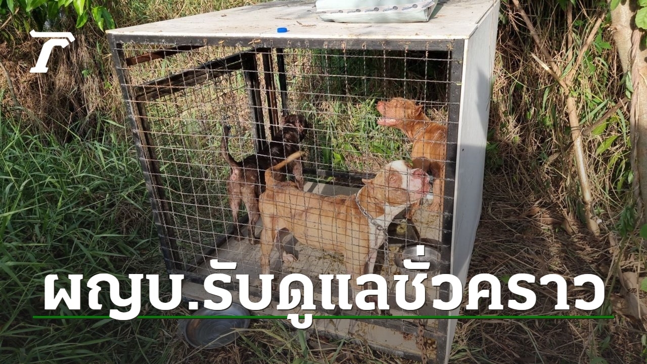 กรณีหนุ่มบ้านเช่าย่านบางบัวทอง ทิ้งสุนัขพิตบูล 4 ตัว ขังไว้ในบ้าน แต่ไม่กลับมาดูแล ทำให้สุนัขหิวโซ โมโหกัดกันเองตาย 1 ตัว ล่าสุด ผู้ใหญ่บ้านรับดูแลชั่วคราวในที่รกร้างหลังหมู่บ้าน หลังเจ้าของสุนัขยังไม่พร้อมมารับกลับ ก่อนนำซากสุนัขที่ตายไปเผา