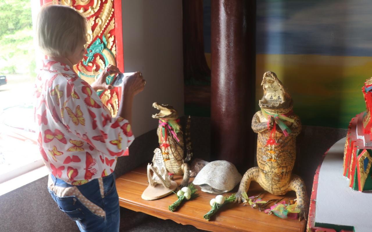 วันที่ 12 มิ.ย. กรณีมีผู้ถวายจระเข้สตัฟฟ์ มีการเขียนยันต์ เลขอักขระ ไว้ในวิหารวัดหัวทุ่ง อำเภอสามโก้ จังหวัดอ่างทอง โดยมีจระเข้ตัวขนาดใหญ่ จำนวน 2 ตัว ที่สตัฟฟ์ไว้ในท่ายืน