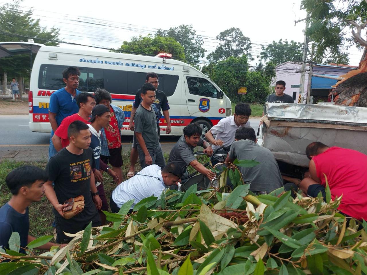 ในเบื้องต้นทราบว่า รถคันดังกล่าวไปซื้อพันธุ์ทุเรียนหมอนทองจากจังหวัดชุมพรเพื่อนำไปปลูกที่ไร่ อ.ทองผาภูมิ จ.กาญจนบุรี มาถึงที่เกิดเหตุ คาดว่าคนขับน่าจะเกิดอาการหลับใน ทำให้รถเสียหลักตกร่องกลางถนนชนต้นไม้ดังกล่าว