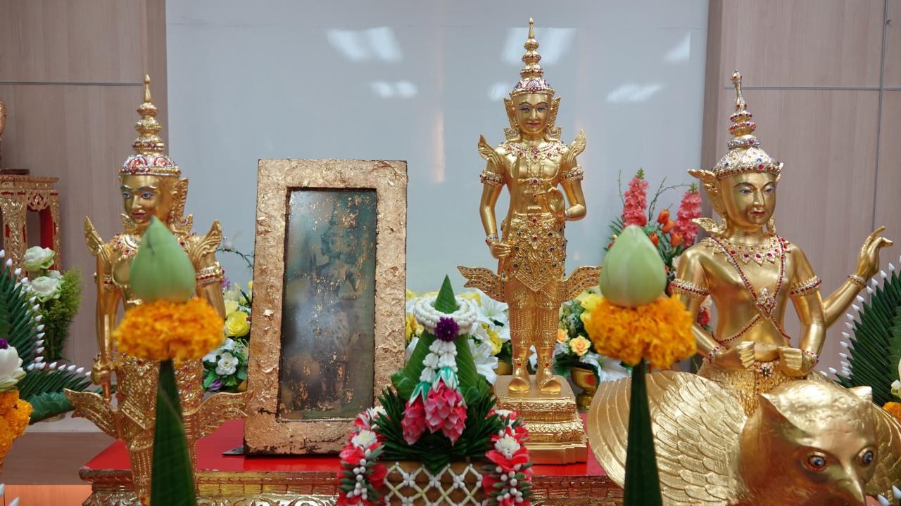 นายอดิเทพ กมลเวชช์ รองผู้ว่าราชการจังหวัดปทุมธานี กล่าวว่า "เนื่องจากระหว่างที่ศาลหลังเมืองปทุมธานีปรับปรุงซ่อมแซม โดยท่านผู้ว่าราชการจังหวัดปทุมธานีได้ป่วยและรักษาตัวอยู่นั้น ก่อนท่านเสีย ได้บอกเป็นข้อความว่า ได้โปรดอัญเชิญมาสู่ในที่ของท่าน โดยท่านได้อธิษฐานพวงมาลา แล้วฝากผมมาทำหน้าที่แทน จัดให้มีพิธีในวันนี้ ประกอบกับวันนี้เป็นวันดีศรีมงคลเป็นวันครูวันพฤหัสบดี เป็นฤกษ์ยามดีที่พระคุณเจ้าพระอาจารย์เทียนชัย ชัยทีโป เจ้าอาวาสวัดเทพสรธรรมาราม (บาย ตึ๊ก เจีย) จ.ปทุมธานี ได้ดูแลพิธีการอัญเชิญโดยมี 1.พระพุทธรูปที่ประจำที่ศาลหลังเมืองปทุมธานี 2.พระสยามเทวาธิราช 3.พระกาฬไชยศรี 4.พระคลัง และ 5.กรอบรูปพระสยามเทวาธิราช ซึ่งเป็นสิ่งศักดิ์สิทธิ์คู่บ้านคู่เมืองจังหวัดปทุมธานี โดยได้อัญเชิญมาประดิษฐานไว้ เพื่อให้พี่น้องประชาชนได้กราบไหว้สักการะ บูชาเป็นสิริมงคล โดยมีท่านนายก อบจ.ปทุมธานี ได้รวบรวมปัจจัยมาดำเนินการปรับปรุงให้สวยงาม”