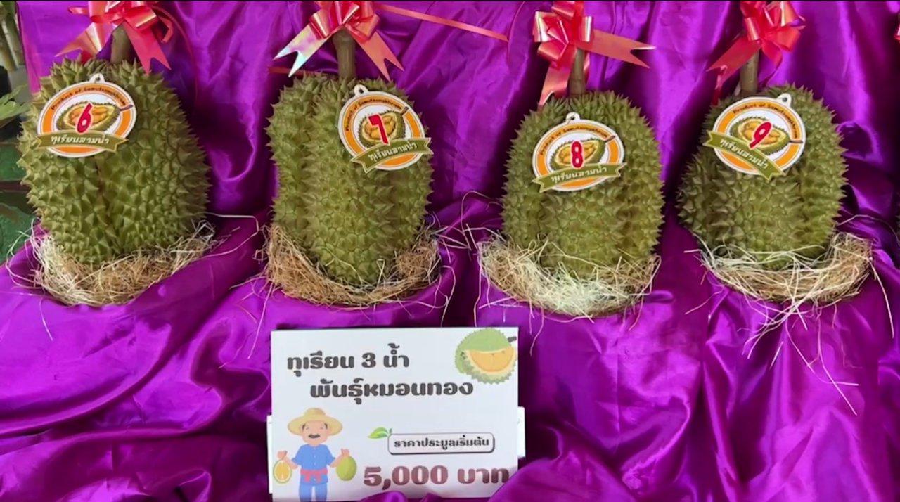 นายสมนึก กล่าวด้วยว่า สำหรับทุเรียนสามน้ำที่นำมาประมูลในครั้งนี้ เป็นของ นายเอกชัย ที่ปลูกทุเรียนสามน้ำมากว่า 10 ปีแล้ว นอกจากจะให้ผลผลิตดีแล้ว ทุเรียนยังมีกลิ่นหอมอ่อนๆ ไม่ฉุนจัด เนื้อนุ่มละเอียด เมล็ดลีบ เนื้อเยอะ รสชาติหอมหวานมันอร่อย ที่ผ่านมา นายเอกชัย จำหน่ายทุเรียนหมอนทองลูกละ 1 พันบาทขึ้นไป ส่วนพันธุ์ก้านยาวขายได้ลูกละ 5 พันถึง 2 หมื่นบาท ซึ่งแต่ละปีก็จะมีคนจองกันจนหมดต้องรอคิวกันนานข้ามปี แต่ด้วยความใจบุญของนายเอกชัย ที่ได้นำทุเรียนดังกล่าว เก็บไว้ให้กาชาด เพื่อมาเปิดประมูลนำรายได้ไปช่วยเหลือครอบครัวที่เปราะบาง ผู้ประสบสาธารณภัย ผู้สูงอายุ ผู้พิการและผู้ด้อยโอกาสในพื้นที่.
