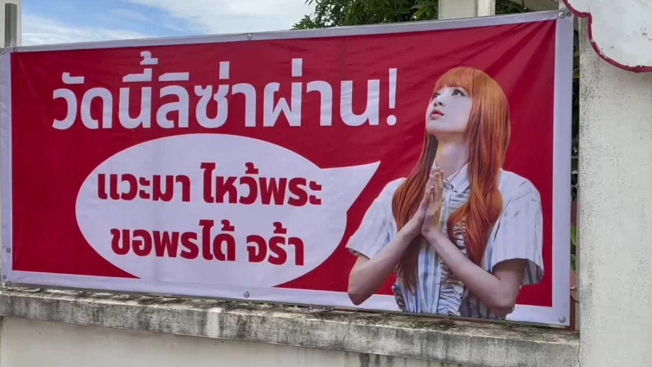 วันที่ 26 มิถุนายน 2566 ที่วัดอินทาราม ต.หัวรอ อ.พระนครศรีอยุธยา จ.พระนครศรีอยุธยา ป้ายไวนิล ขนาดใหญ่มีรูปลิซ่าพร้อมขึ้นแคปชั่นว่าวัดนี้ลิซ่าผ่าน แวะมาไหว้พระขอพรได้จ้า