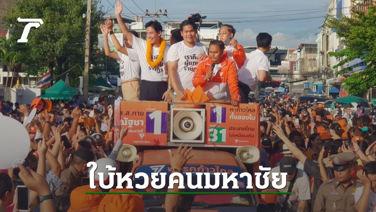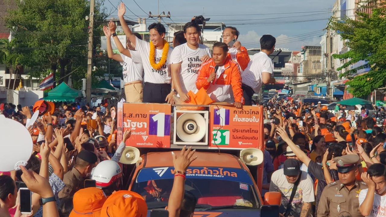 พิธา ลิ้มเจริญรัตน์ หัวหน้าพรรคก้าวไกล รับฟังเสียงสะท้อนของพี่น้องชาวประมง 22 จังหวัด ที่สมุทรสาครขึ้นรถแห่ ก่อนปราศรัยกับประชาชน บอกส.ว.จำนวนมากเลือกลงคะแนนเพื่อไปสู่อนาคต ใบ้หวยให้เลย งวดนี้ออก 376 แน่นอน