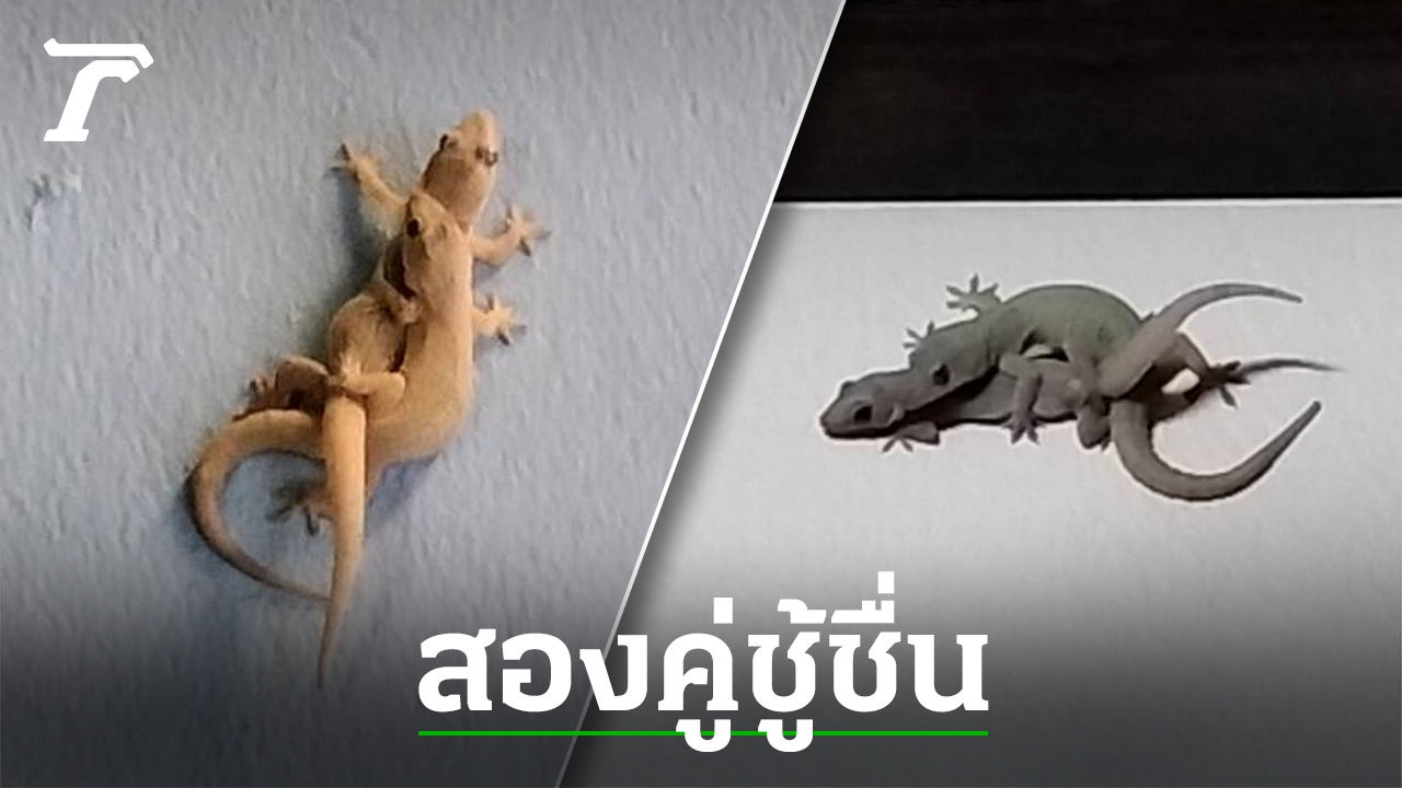เจ้าของบ้านที่กบินทร์บุรี เพิ่งเคยเจอจิ้งจก 2 คู่ 4 ตัว โชว์ลีลาพลอดรักให้เห็นพร้อมกัน บอกเคยได้โชคจากงูเขียวที่รัดกันที่หน้าบ้าน ครั้งนั้นได้ไปนับแสน ครั้งนี้ก็เชื่อว่าจะมีโชคอีก