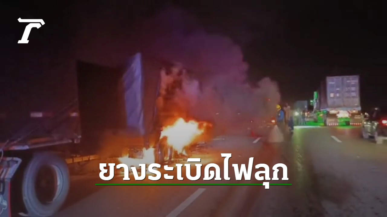 รถบรรทุกพ่วงขนน้ำยาลอกท่อ ยางระเบิดกลางถนนสายเอเชีย ก่อนเกิดไฟลุกไหม้ เจ้าหน้าที่ระดมกำลังระงับเหตุได้ภายในไม่กี่สิบนาที