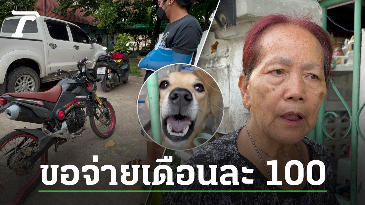 หมาวิ่งตัดหน้ารถ ทำหนุ่มขี่ จยย.ล้มไหล่หลุด รถ-ไอโฟน 13 Pro Max พังเสียหาย คุณป้าวัย 74 เจ้าของสุนัขโอดไม่มีเงิน ได้เบี้ยยังชีพผู้สูงอายุ เดือนละ 700 จะขอผ่อนจ่ายเดือนละ 100 เพราะส่วนที่เหลือ 600 บาท ต้องกินทั้งเดือน ทั้งคนทั้งหมา