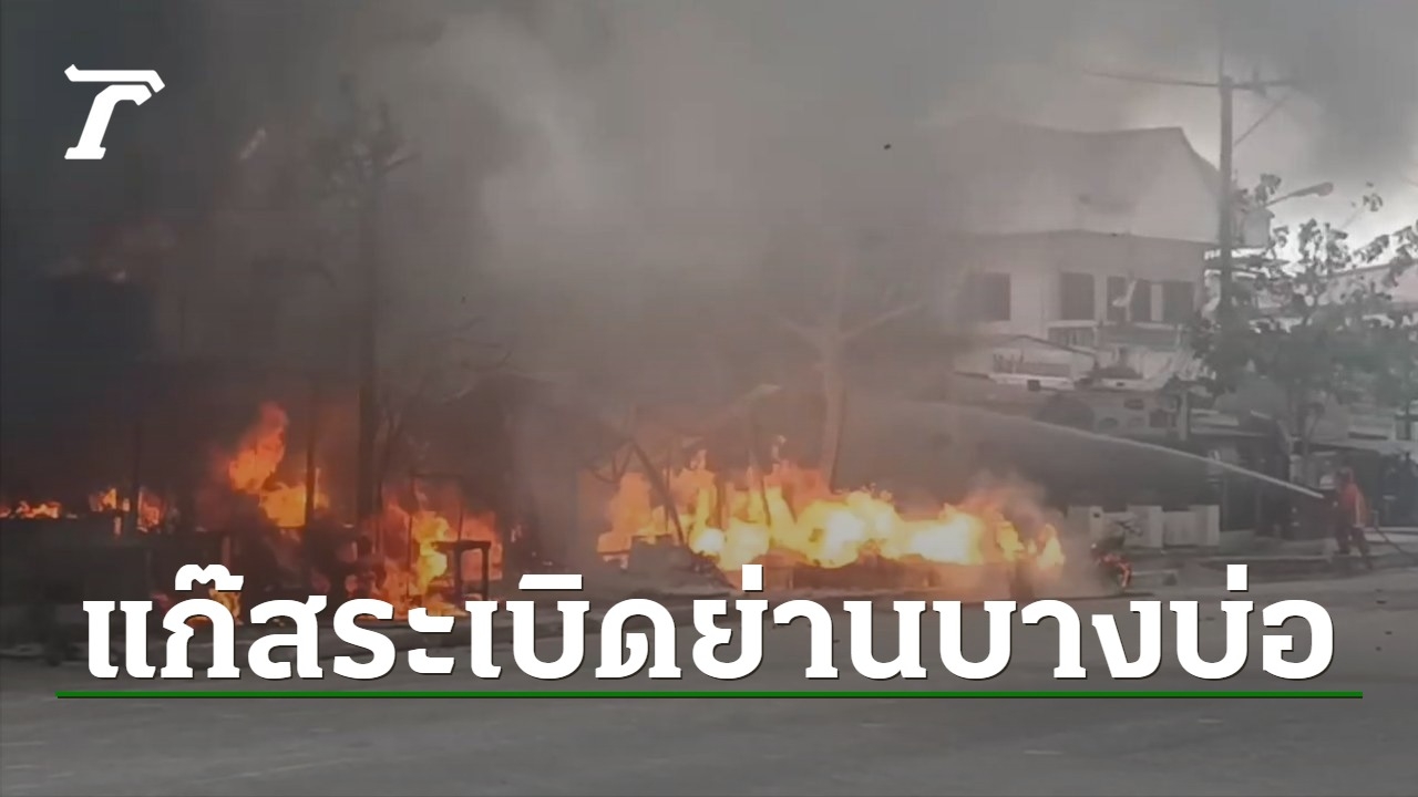 เจ้าของร้านแก๊สย่านบางบ่อ ริมถนนสายรัตนราช ยกถังแก๊สขนาด 48 กิโลกรัม ขึ้นซ้อน 2 ชั้นแล้วพลาดตกกระแทกพื้น เกิดประกายไฟและลุกลามอย่างรวดเร็วเกินควบคุม จนเพลิงเผาอาคารวอด 6 หลัง บาดเจ็บ 3 ราย